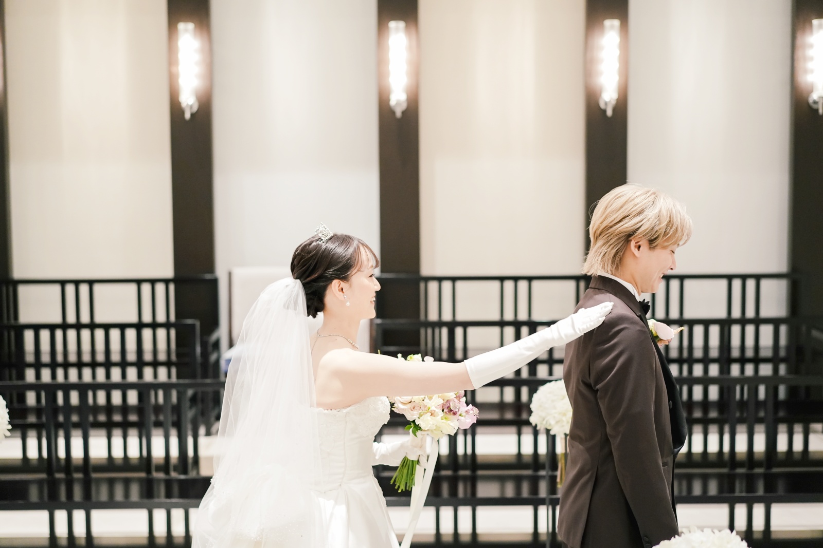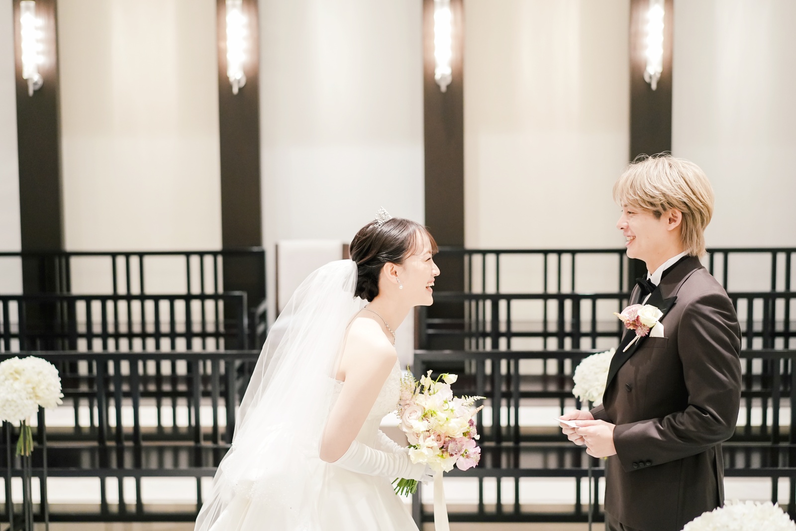新婦様のドレス姿を初めて見た瞬間の新郎様の表情には、
