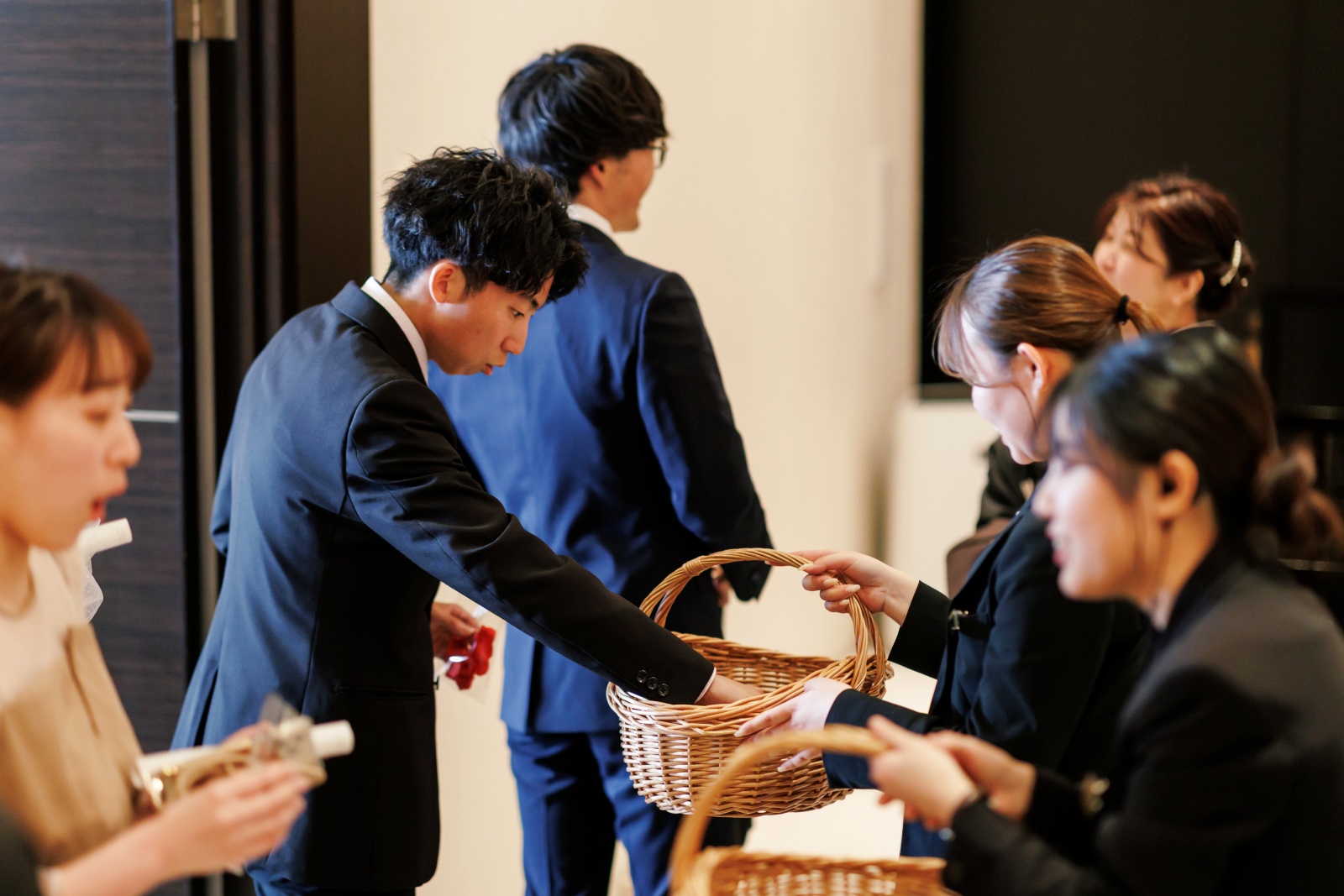 まずはゲストがチャペルへお入りになる際に、お一人ずつBOXをお渡しします。