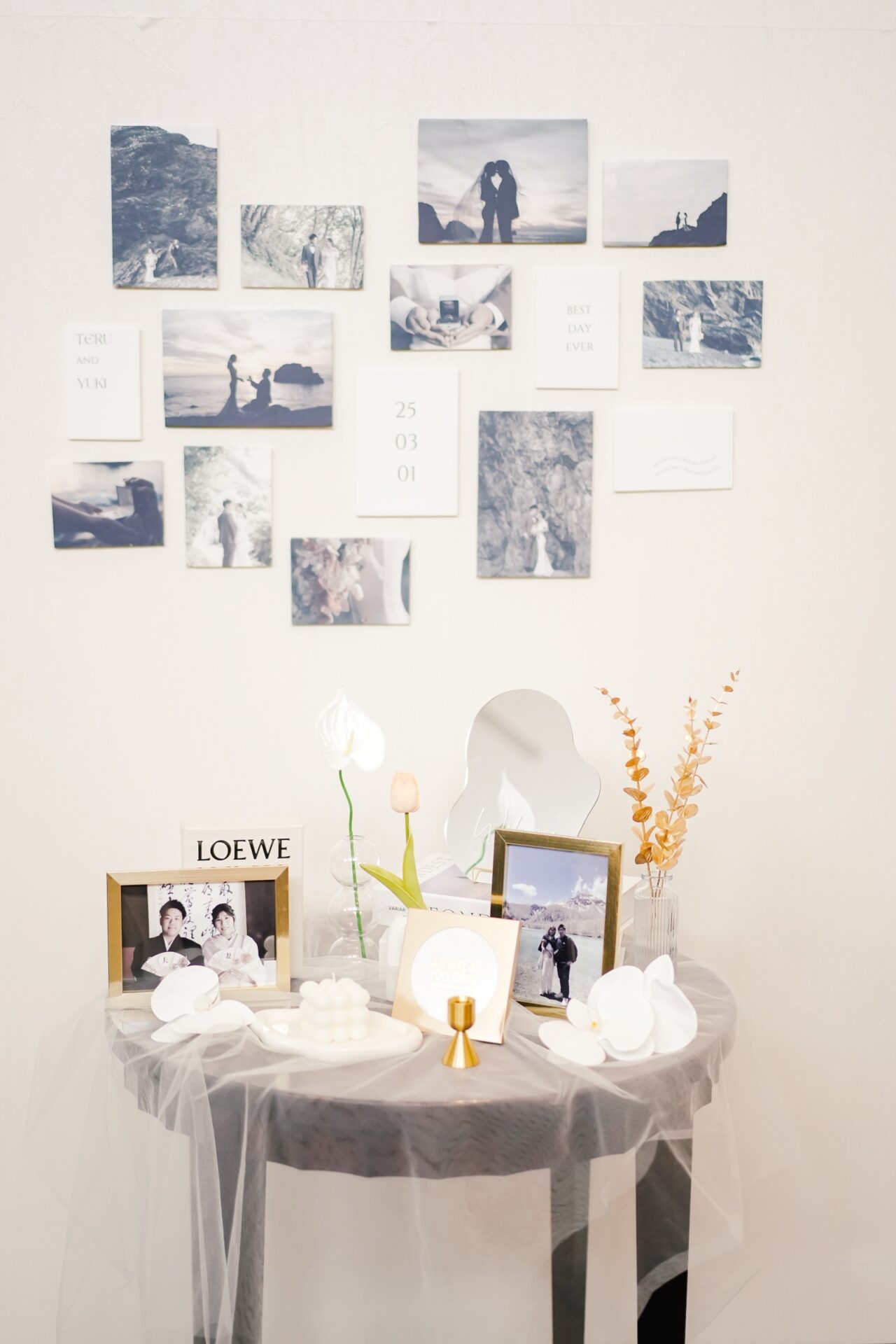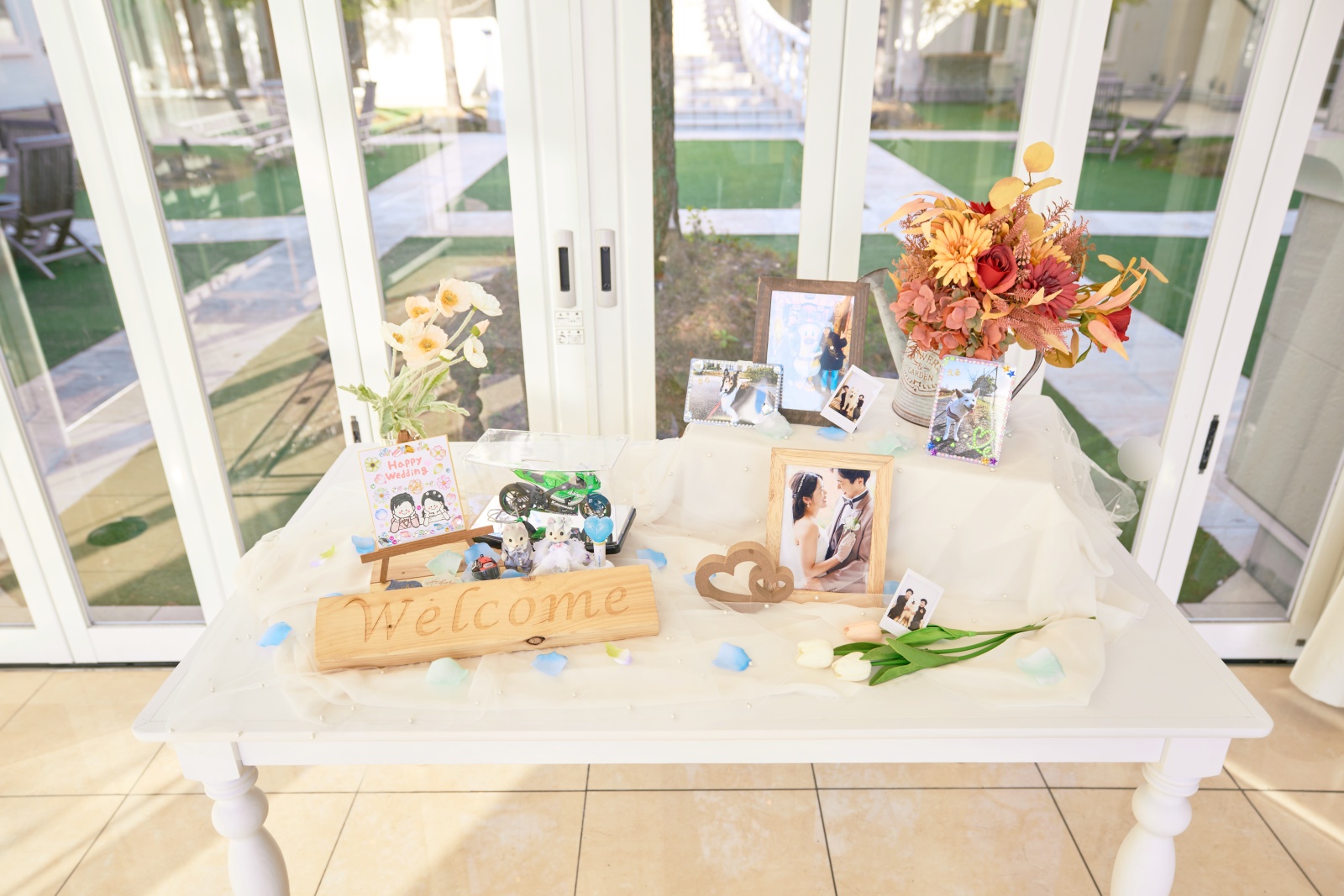 おふたりの前撮りのお写真や、グッズを飾って頂く方が多いのですが、