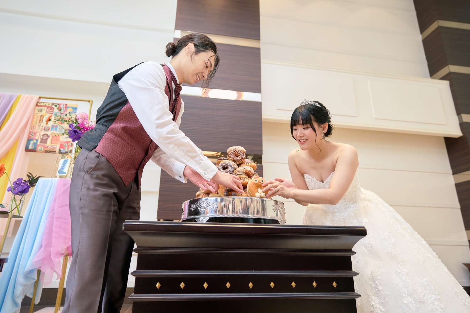 今回はウェディングケーキの代わりにドーナツタワーをご用意された
