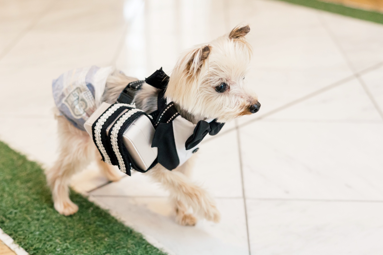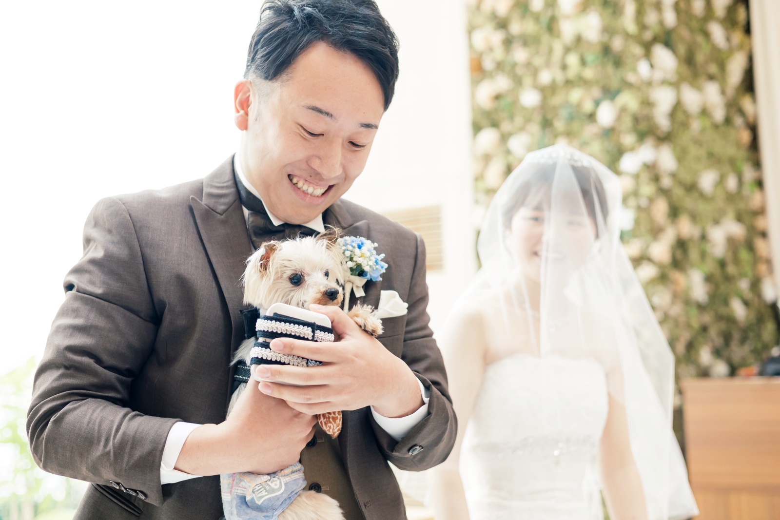 新郎様の腕の中で安心している小さな家族。