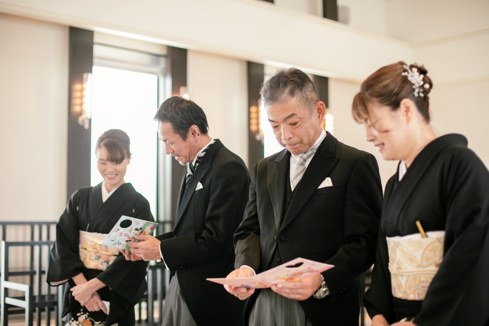 親御様はまだおふたりの晴れの姿をご存じありません。