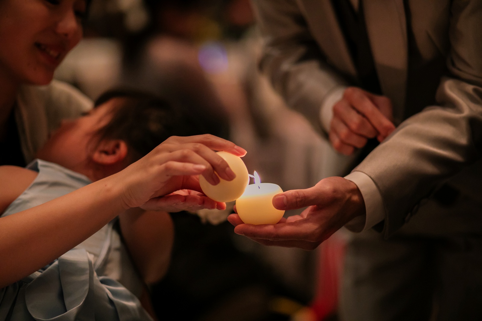 キャンドルリレーは、会場の皆様の気持ちが一つになる