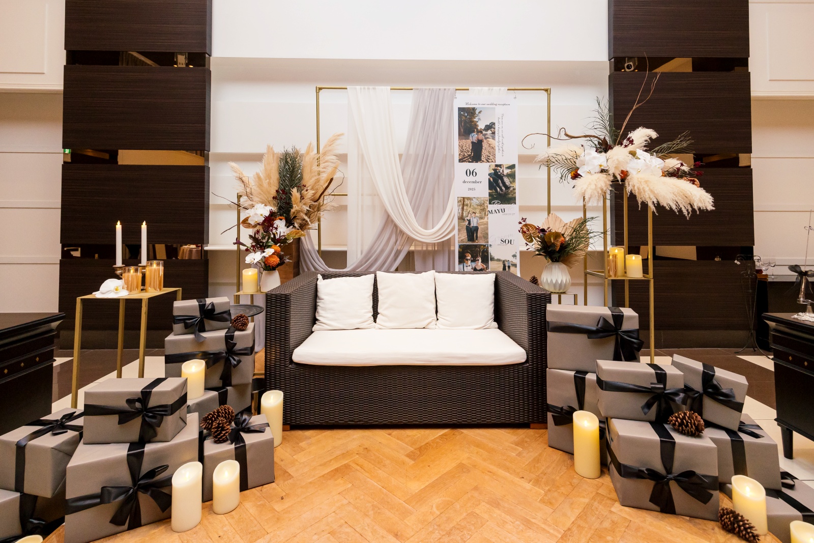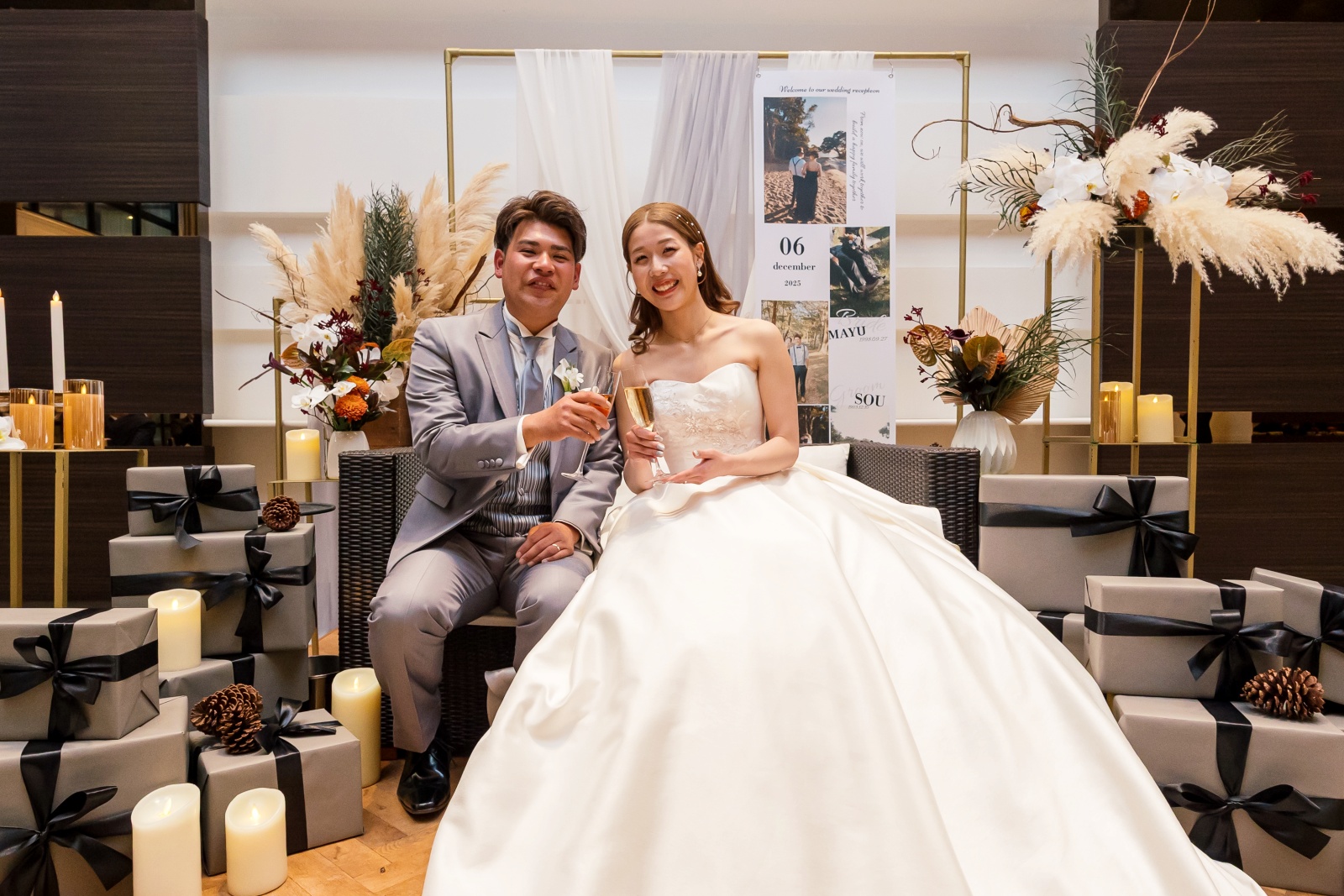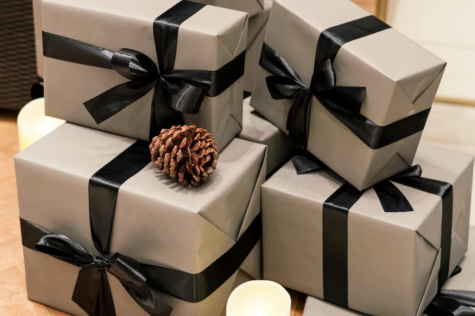 グレー×ブラックリボンのプレゼントBOXがオシャレ♪