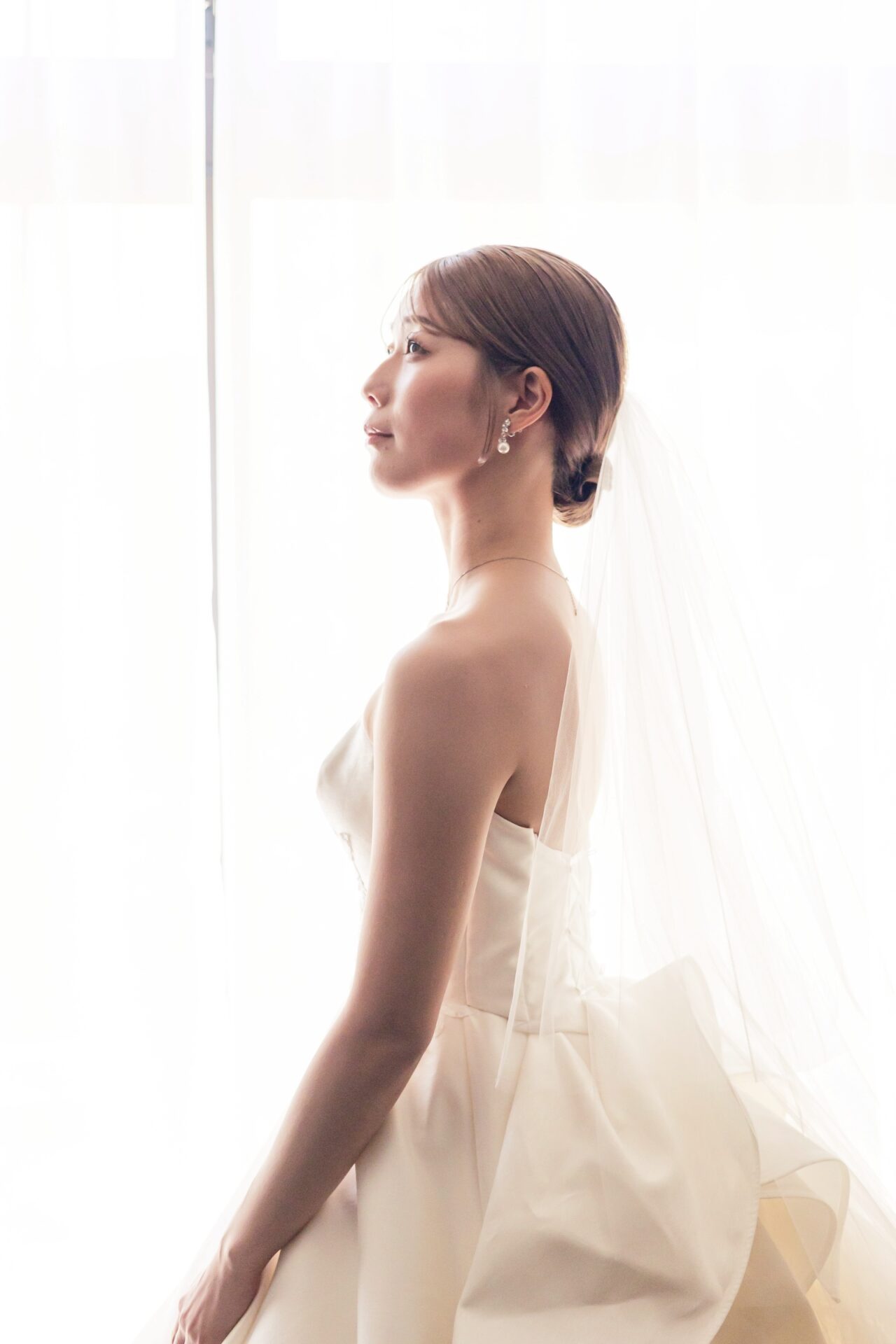 凛とした想いを込めて、シンプルなシニヨンにまとめて。