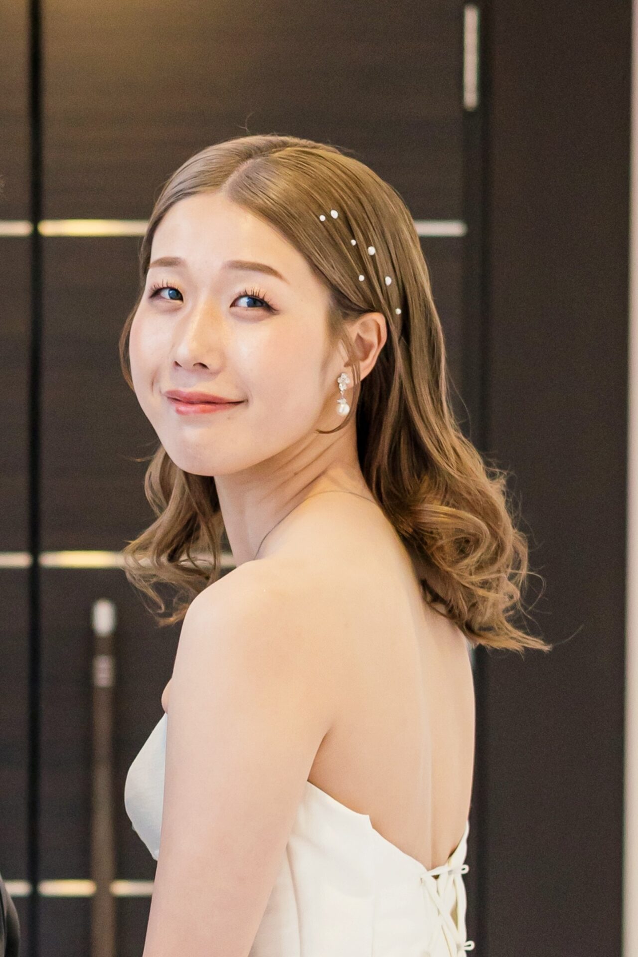 緊張がほどけたように、やわらかなダウンスタイルへ。