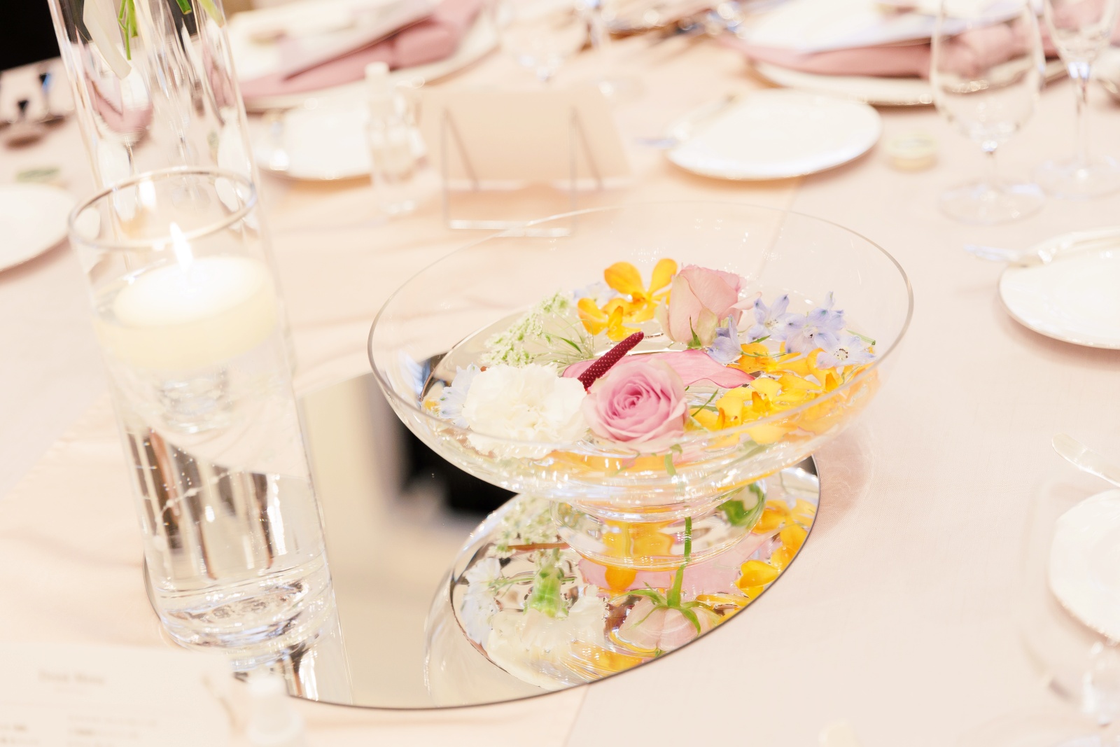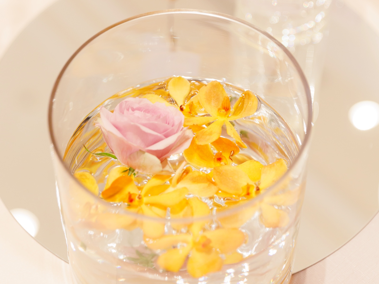 水がたっぷり入ったフラワーベースに浮かべて頂きました。