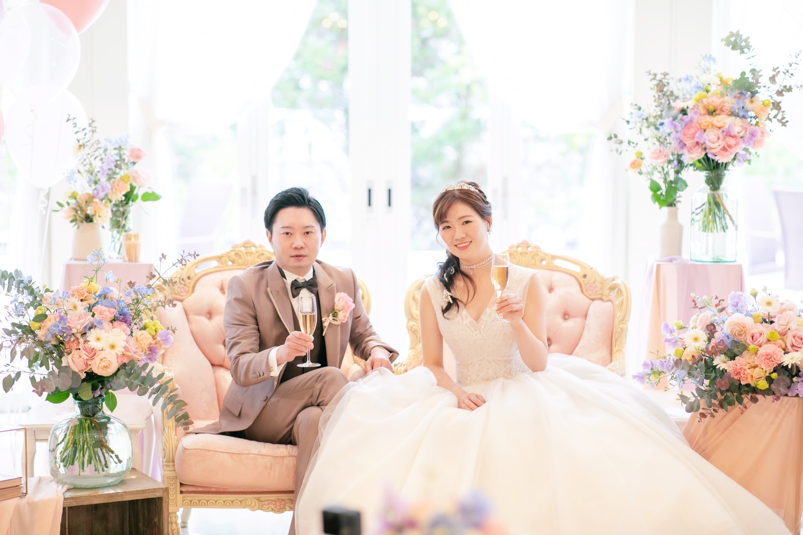 グラスを手にお互いを見つめ合うおふたりに