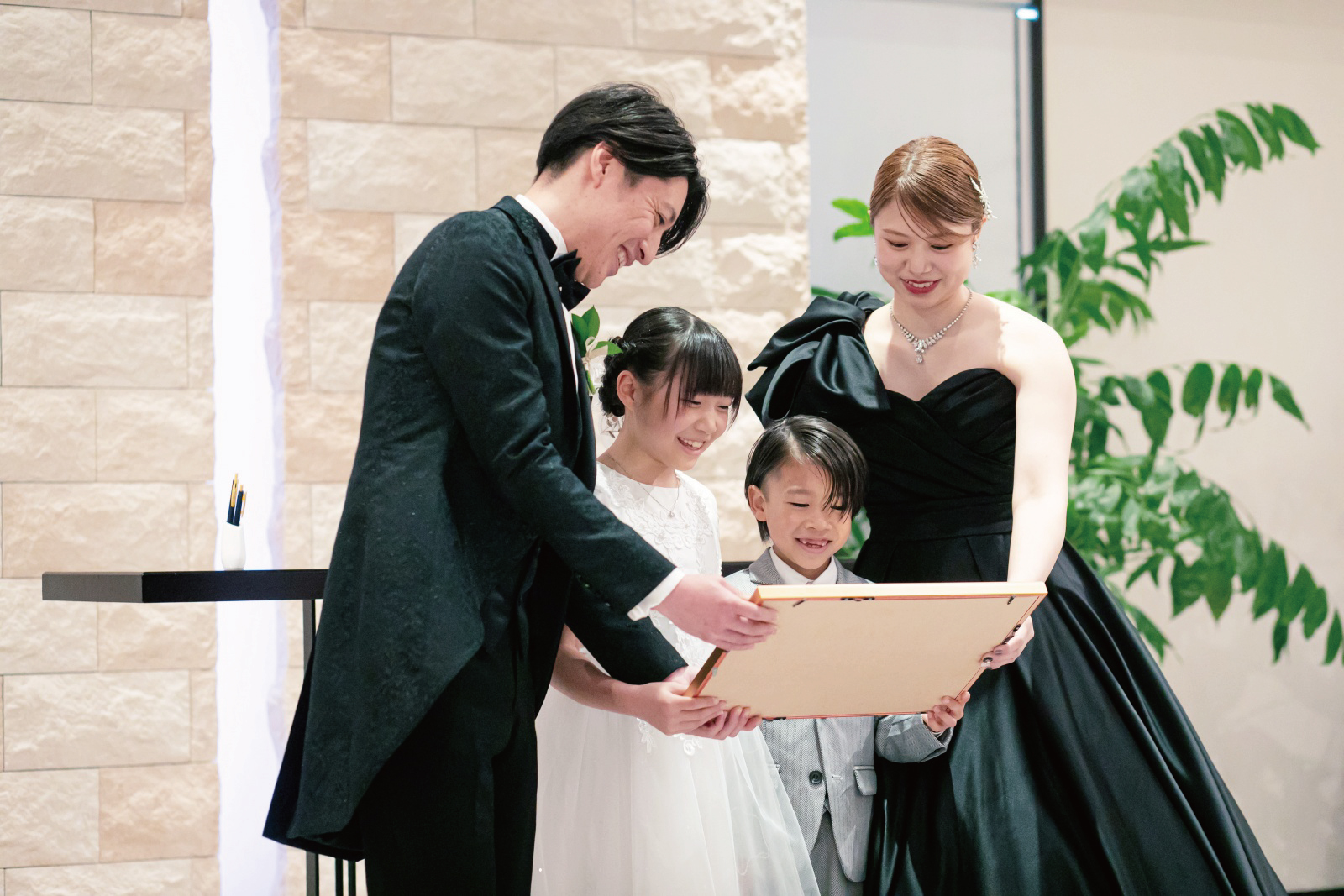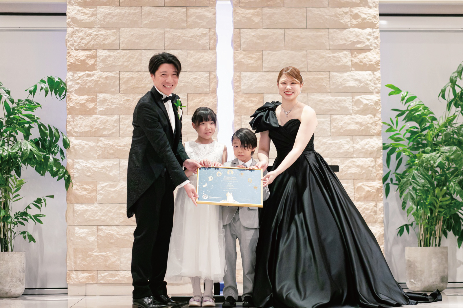 証明書の披露も家族全員で。おふたりにとってはもちろんですが、2人のお子様にとっても、かけがえのない時間ですね。
