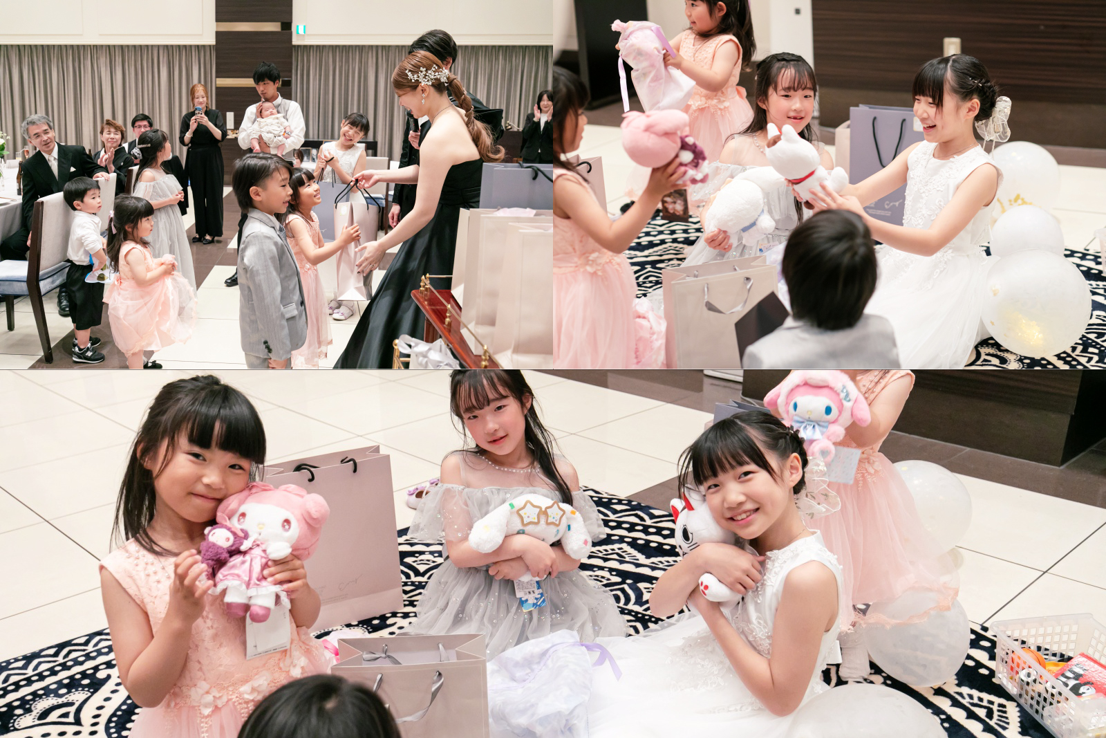 ビンゴのプレゼントを手にうれしそうな笑顔のキッズゲストたち。素敵な思い出になりますね。
