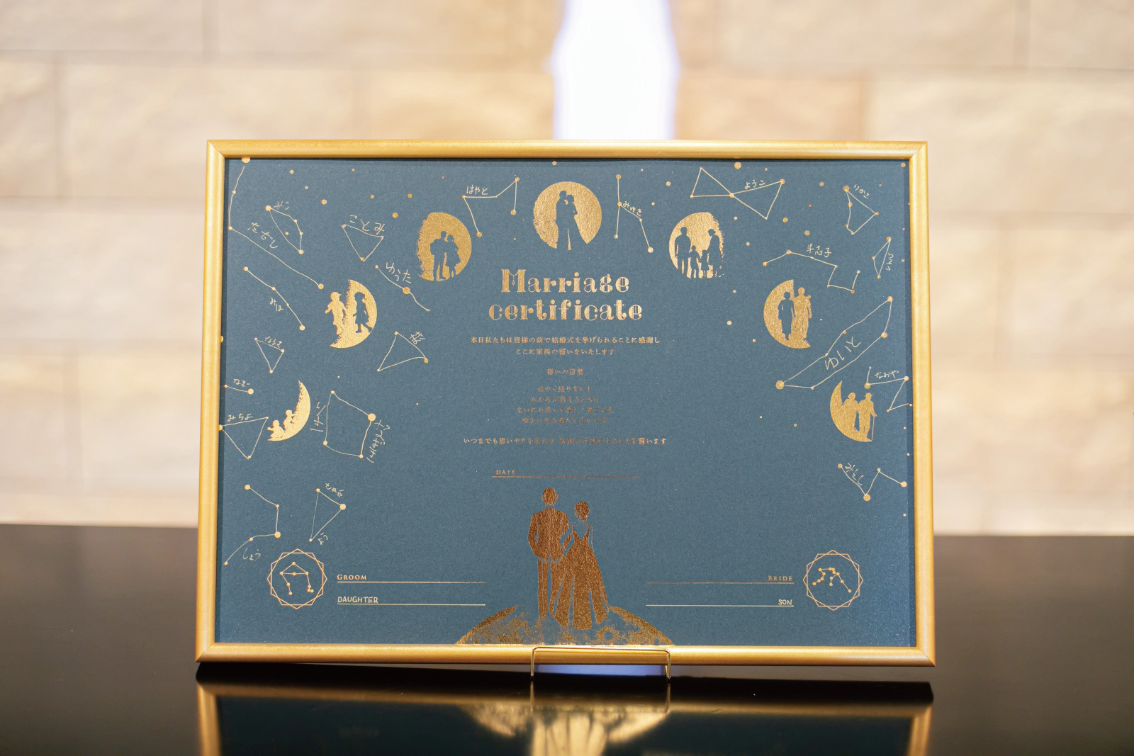 素敵なオリジナル星座が描かれた世界に一つの結婚証明書が出来上がりました。