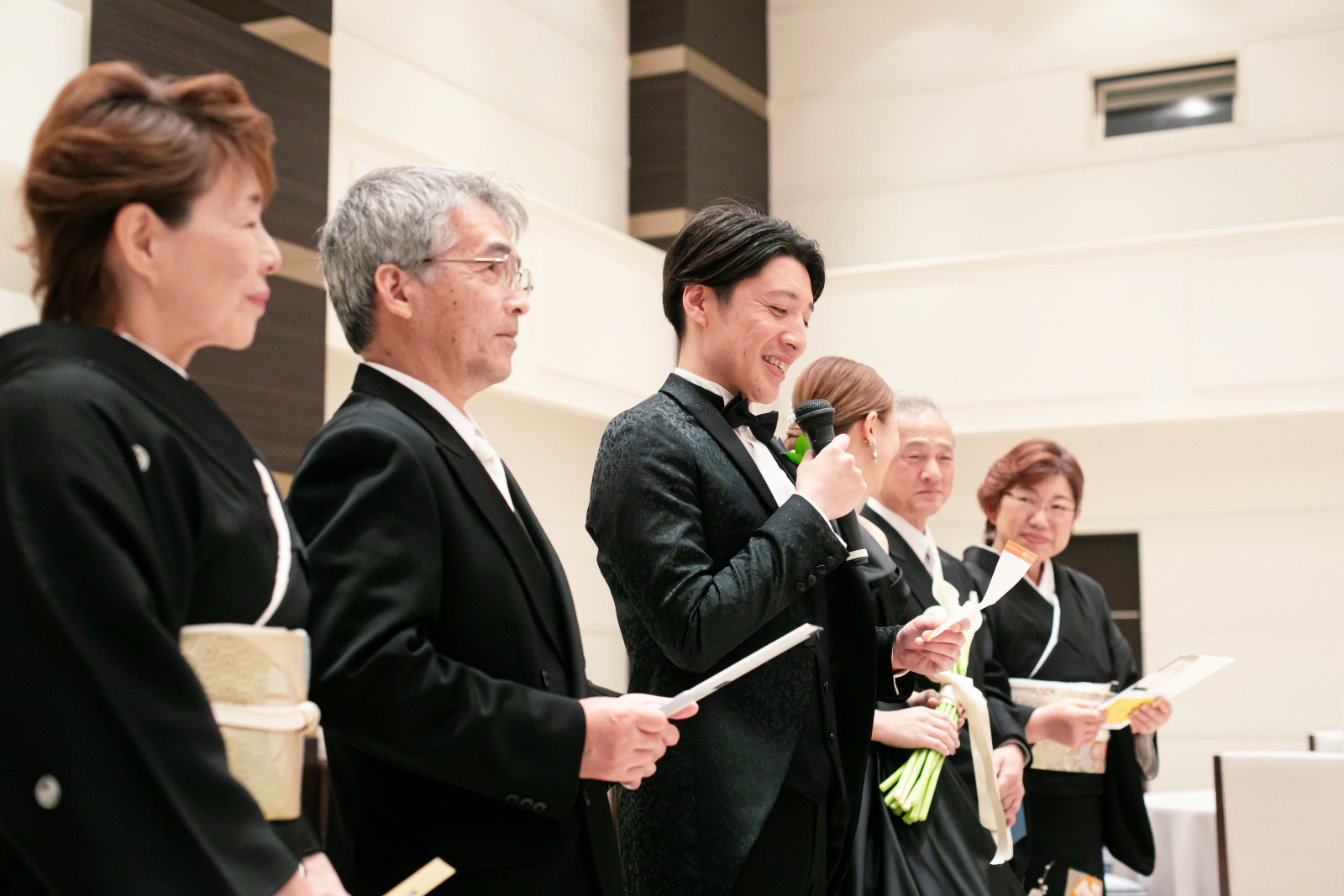 歓談中には皆様にマイクを回しながら、祝福のコメントを頂きました。普段から身近にお付き合いを続けておられるからこそのエピソードも♪