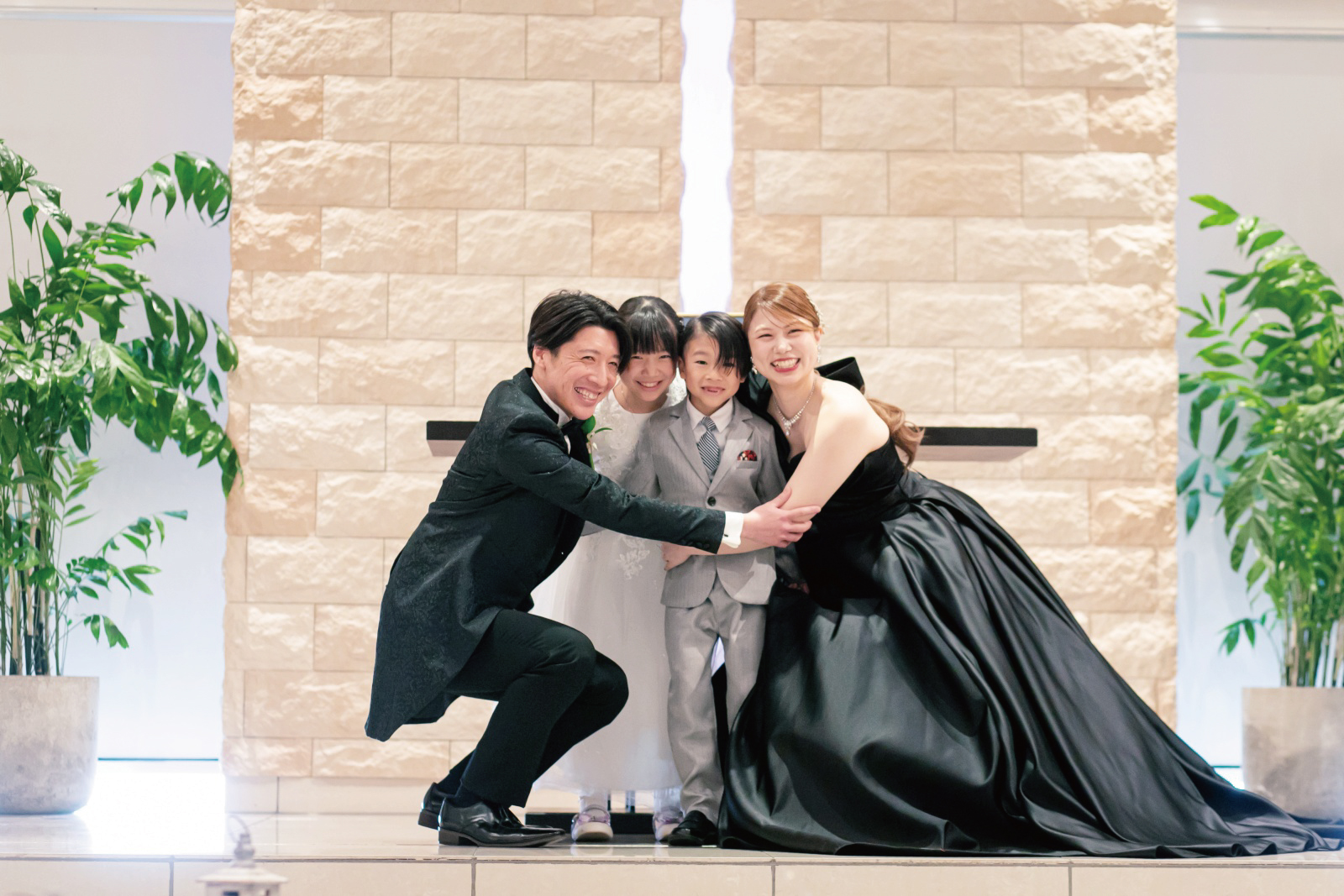 誓いのキスの代わりに、ファミリーハグ。ご家族の仲の良さが伝わってきます。