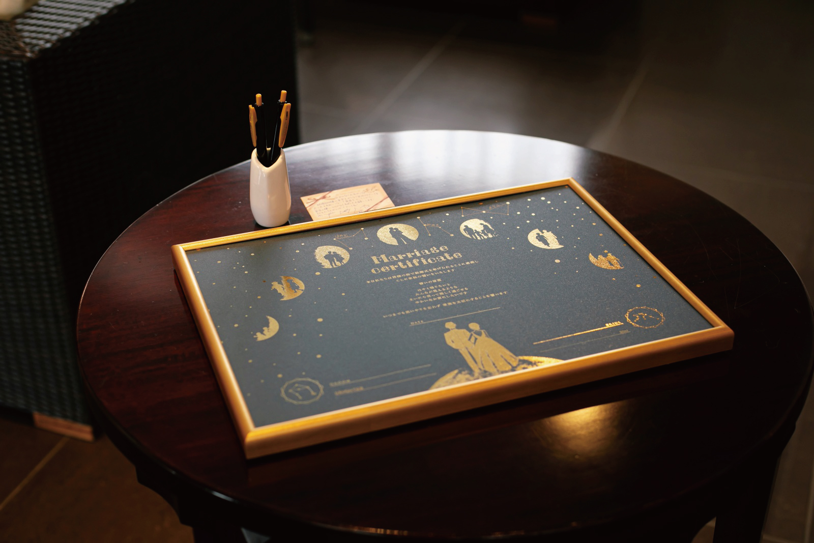 結婚証明書はおふたりのお子様がサインされて完成です。大切なお子様のサインは、大事な宝物になりますね。