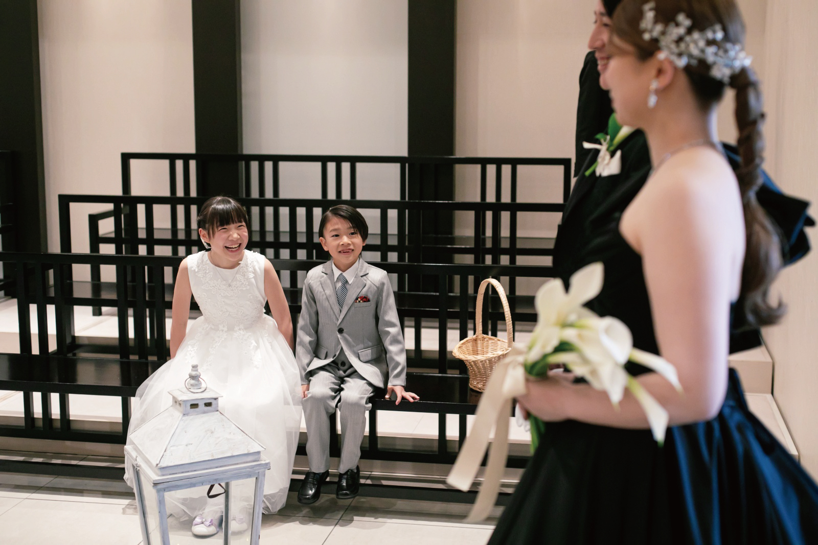 可愛い甥っ子、姪っ子ちゃんがリングキッズを。笑顔で受け取り指輪の交換を。