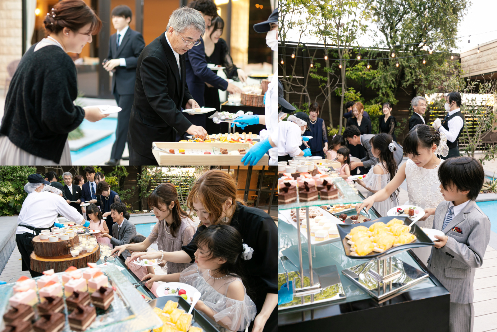 パーティーの後半は、おふたりからゲストへ感謝の気持ちを込めて開放的なテラスでデザートブッフェをご用意。