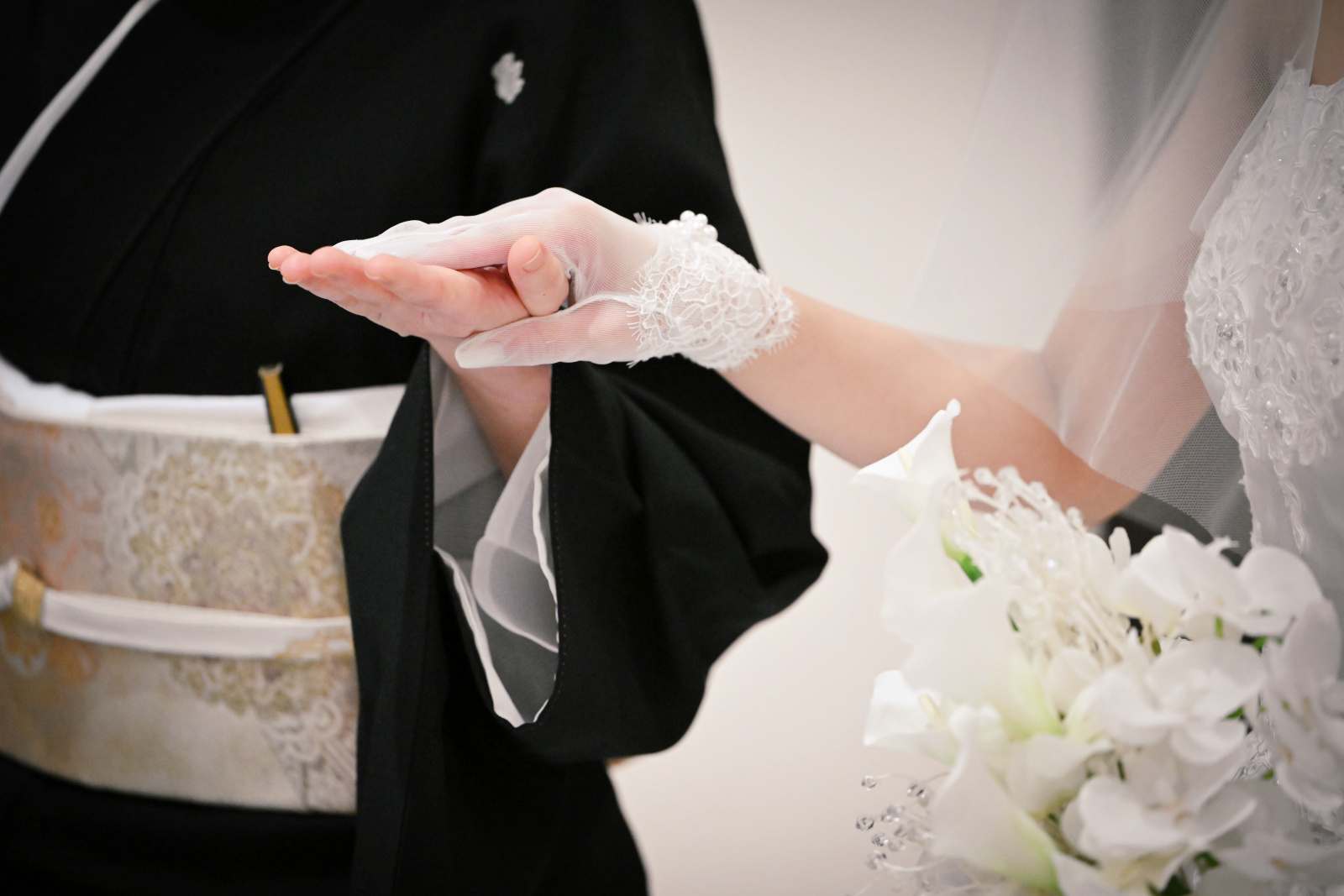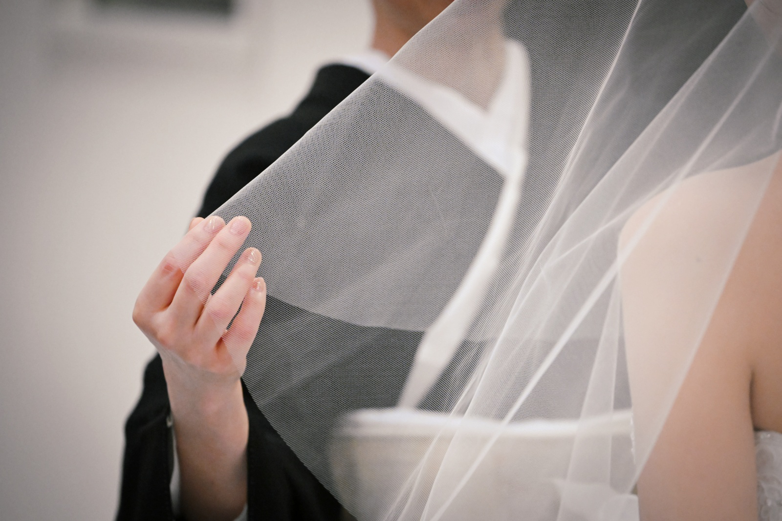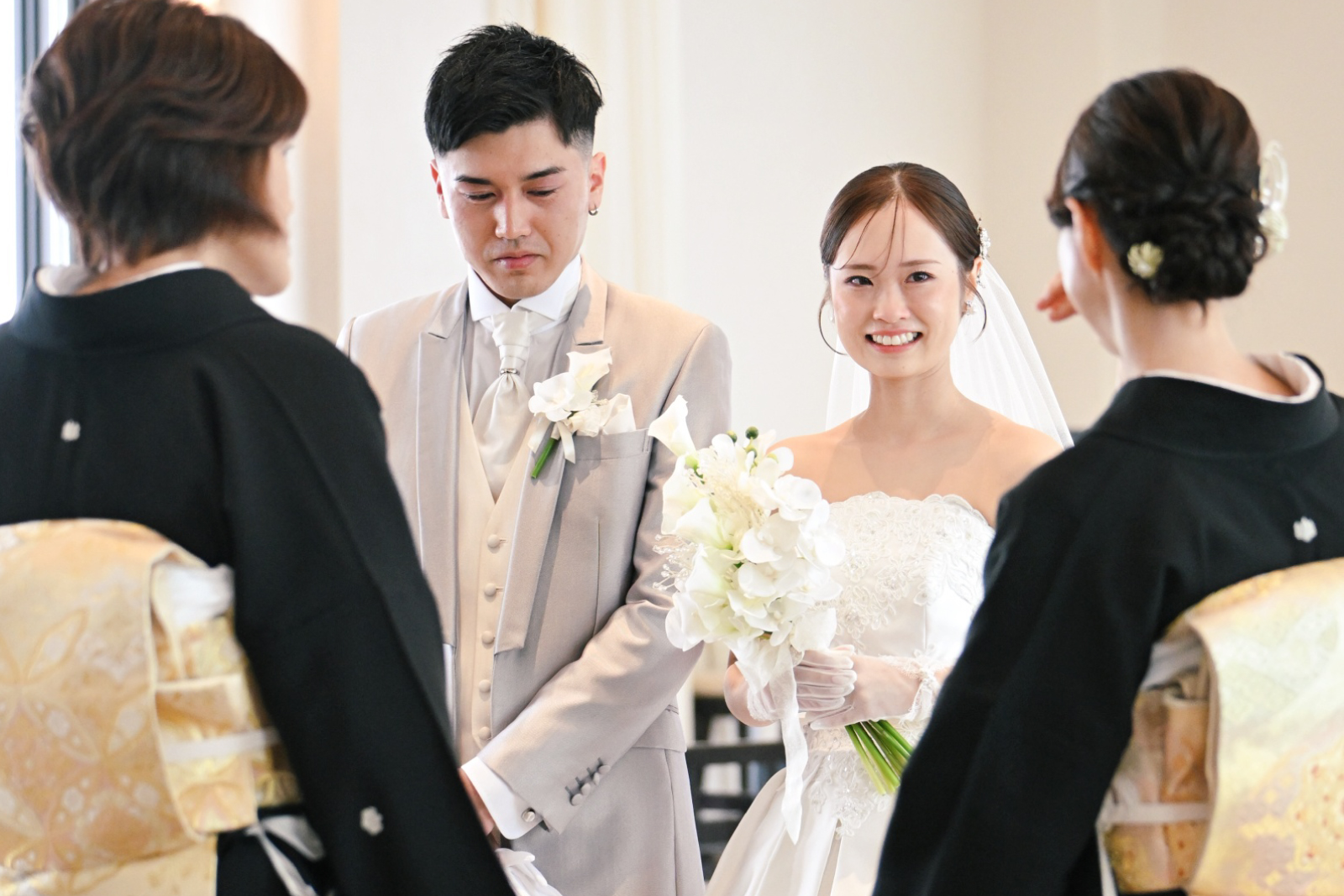 お母様によるベールダウン。ベールを下ろし、整えられる様子は、まるでお子様のお出かけ前のお支度をされるようなお気持ちと、子育ての卒業のような複雑な思いも感じられたのではないでしょうか。