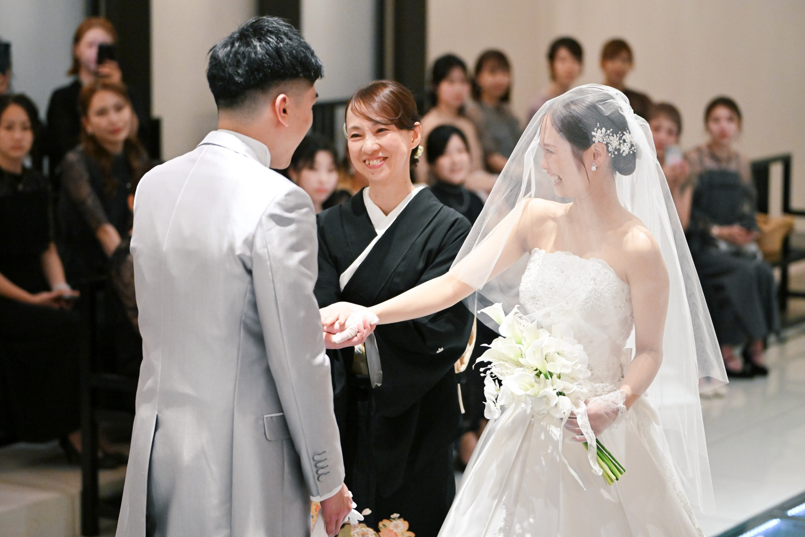 新郎様に笑顔でお嬢様を託されるお母様。「お願いね」という思いと、「この人なら安心」「一緒に幸せになってほしい」そんな思いが伝わってきます。