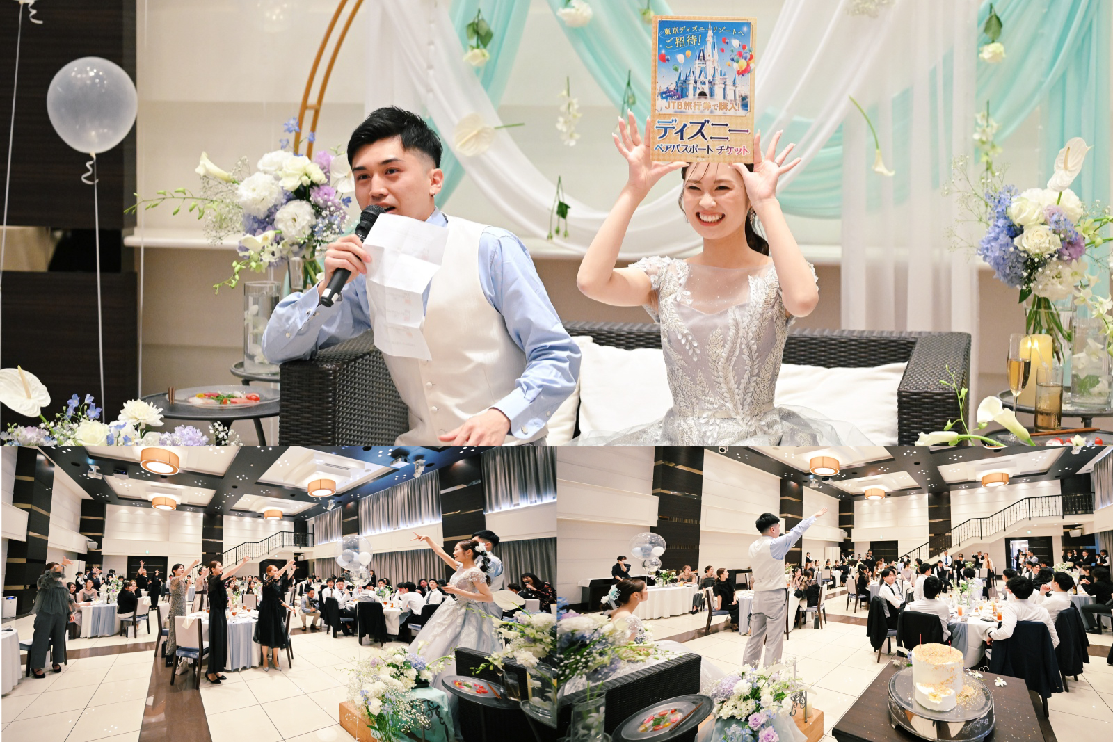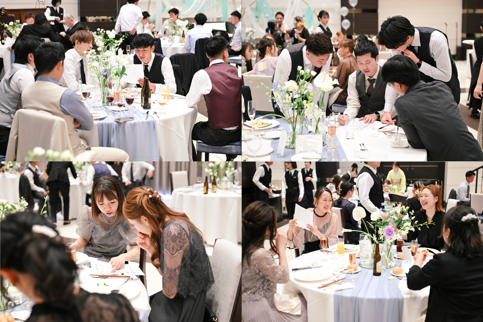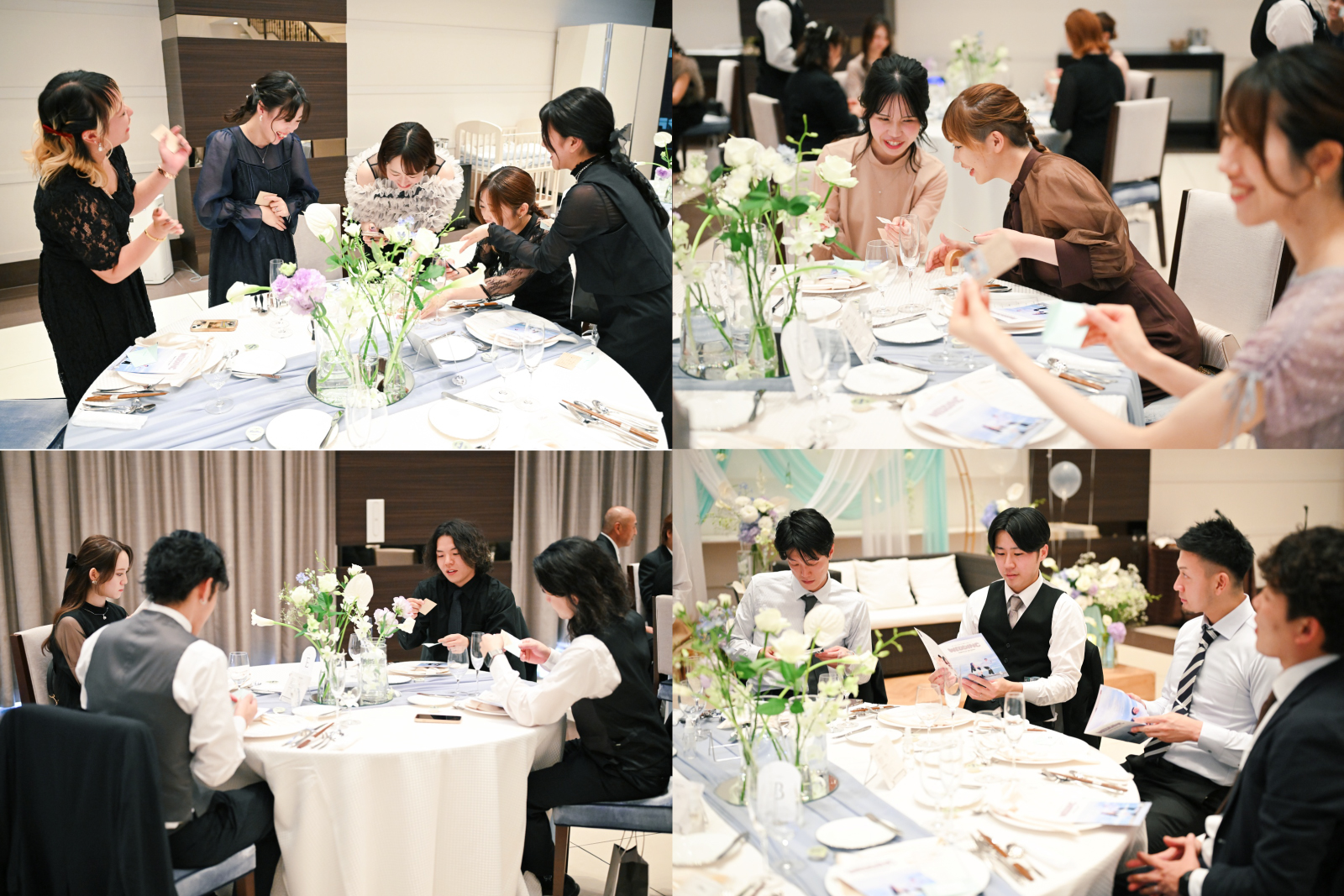 パーティーの後半は、おふたりがご用意されたクイズの正解発表。おふたりがマイクを持ち、エピソードなども交えて発表されるので、とても盛り上がります。豪華景品もご用意♪