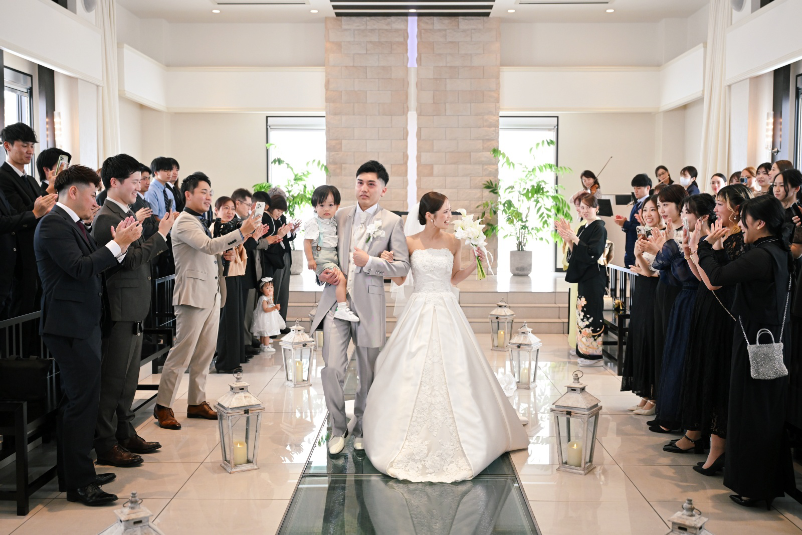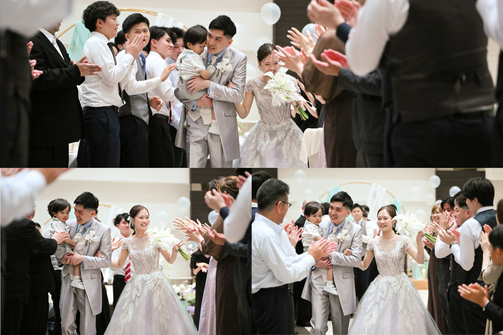 おふたりの結婚式でもあり、おふたりの大切なお子様のご披露とお誕生日をお祝いする1日でもあった日。おふたりが「親」になったからこそ持つことが出来た我が子への愛情と、親御様への感謝の気持ち。どちらもストレートに表現することが出来るのが結婚式の魅力です。また、おふたりを心から祝福するために集まって下さったゲストの皆様。おふたりをお祝いし、心から結婚式を楽しまれている。ご招待するおふたりと、ご招待されるお客様。皆様がお互いに思い、感謝しあえる素敵な結婚式だったと思います。