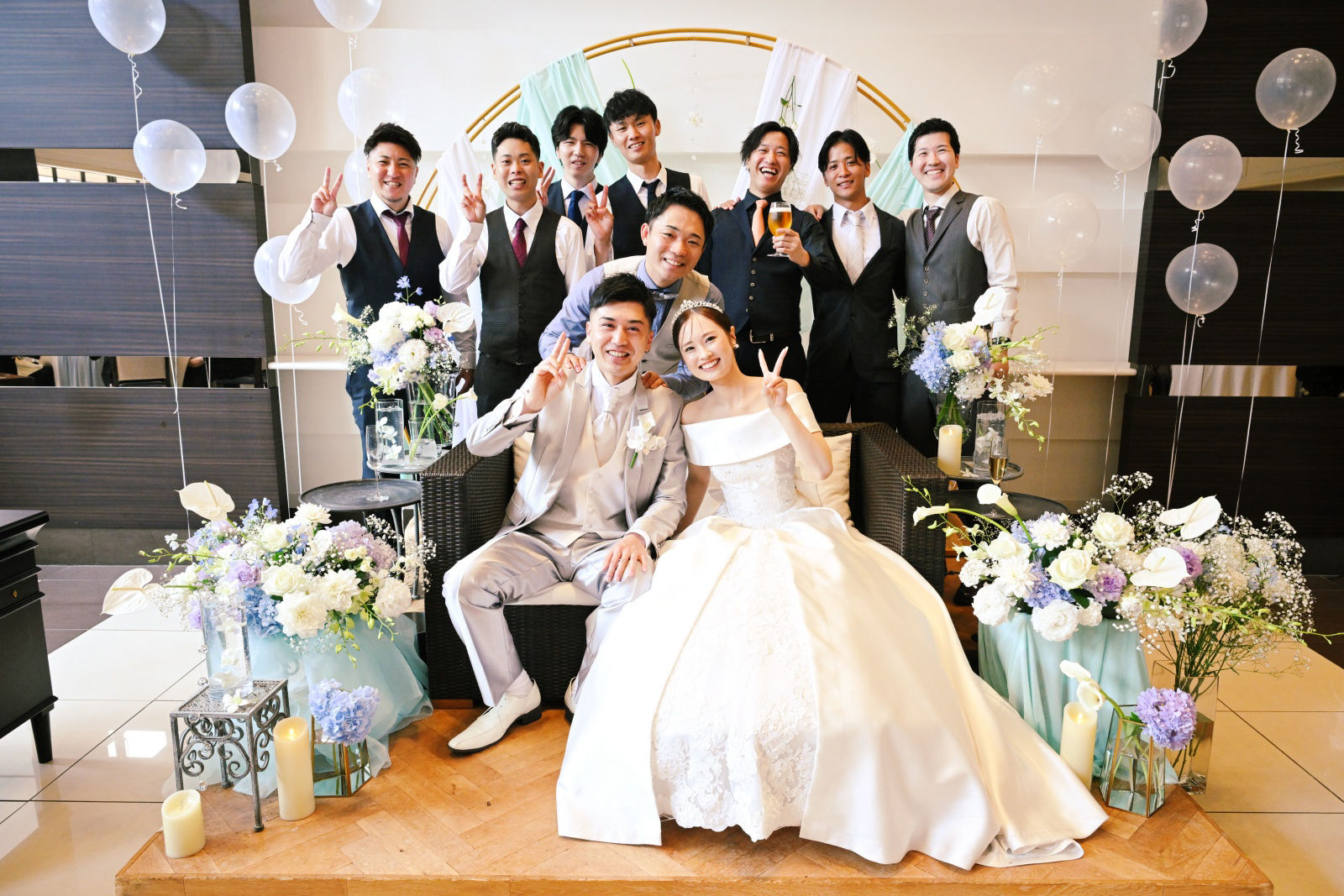 新婦様のお色直し退場のエスコート役をお願いしたのは、新婦様のご地元の大切なご友人様。素敵なサプライズに涙ぐまれながらも、快く引き受けて下さいました。