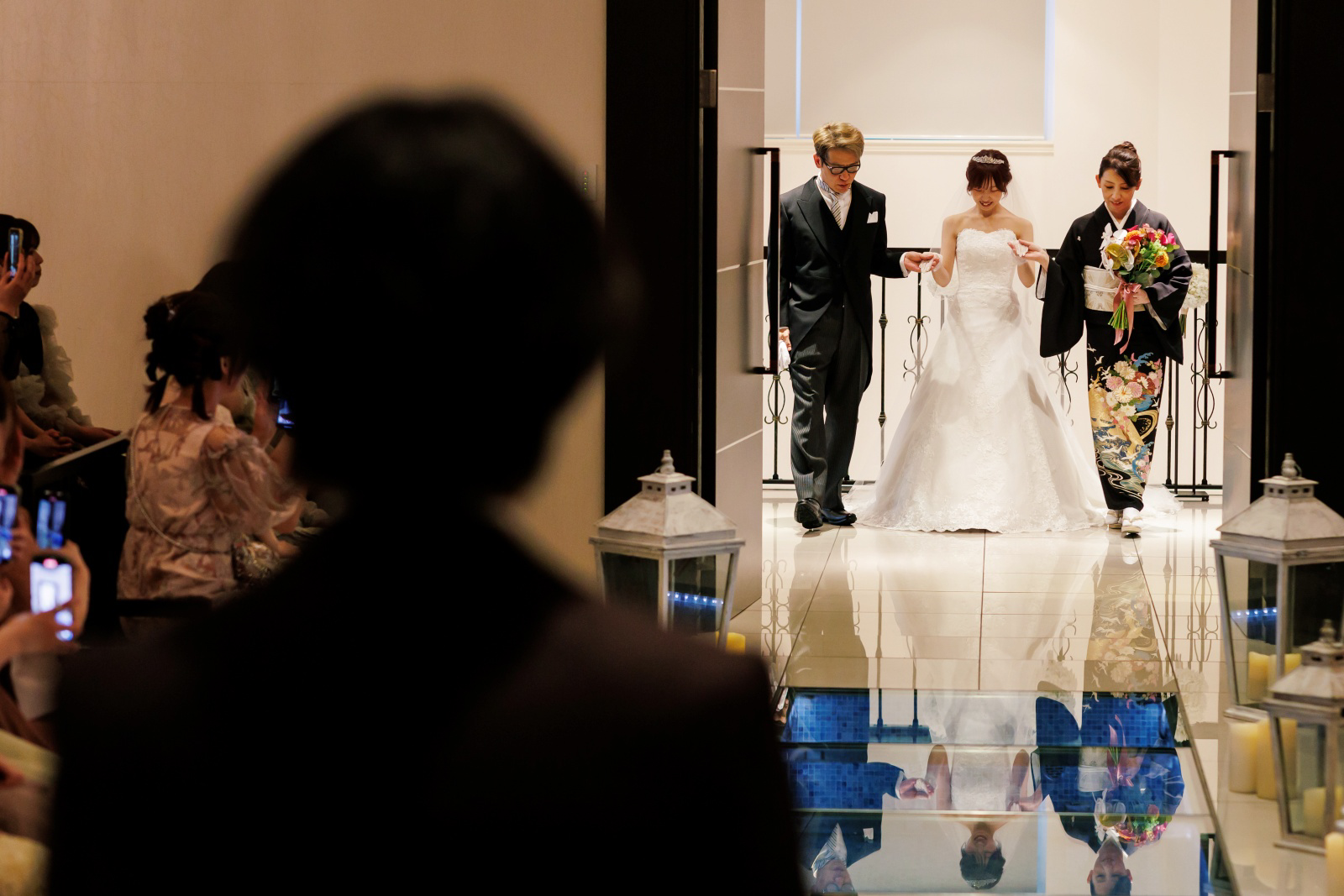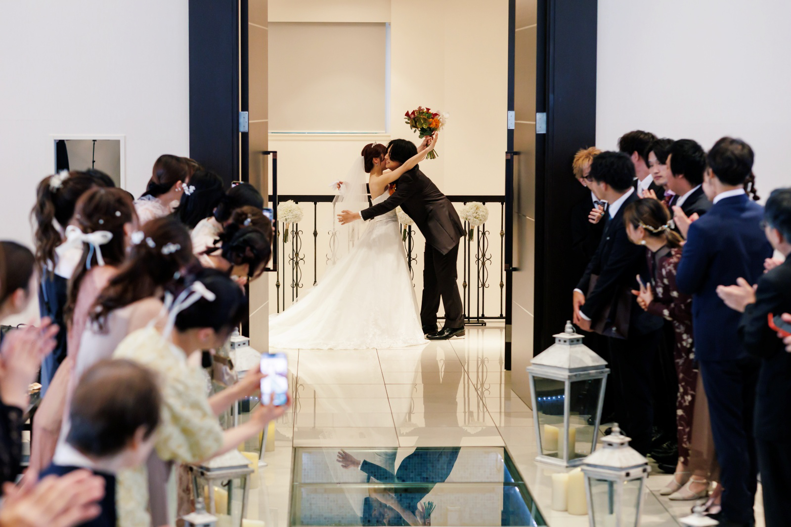 退場は明るく、そして笑顔で。ゲストの祝福の笑顔と拍手を近くに感じながら扉口へと進まれます。