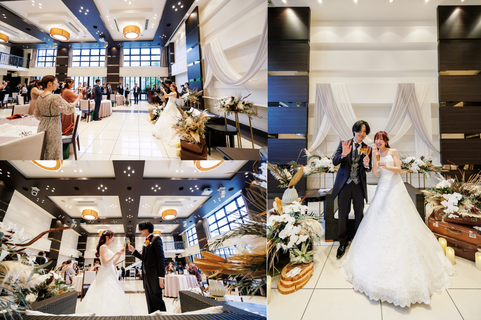 おふたりはご入場と同時に、ダンスをご披露。当日をお迎えになるまでに実際に会場でのリハーサルもされ、ゲストの皆様に楽しんで頂きたいという気持ちが溢れた演出になりました。