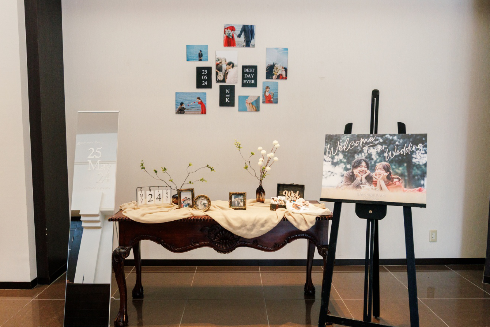 ウェルカムスペースには素敵なおふたりのお写真が飾られ、お越し頂くゲストも喜んでご覧になられていました。