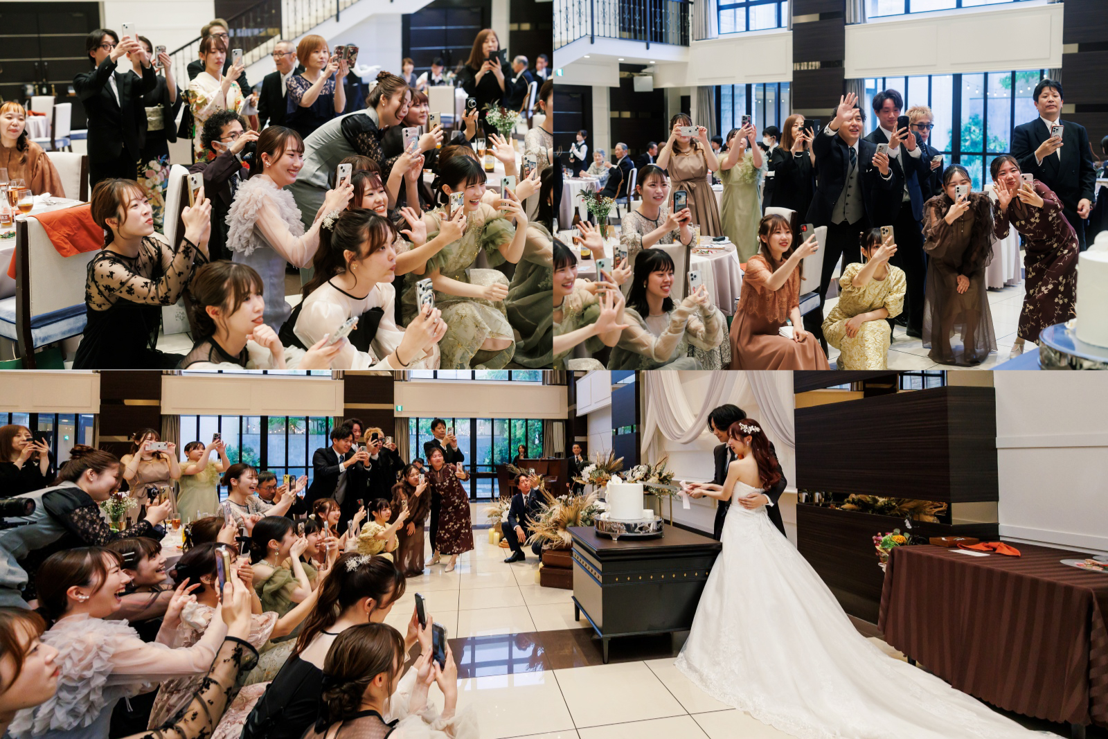 おふたりの目の前にはたくさんのカメラを持ったゲストの皆様が!おふたりにとっては幸せな光景ですね。