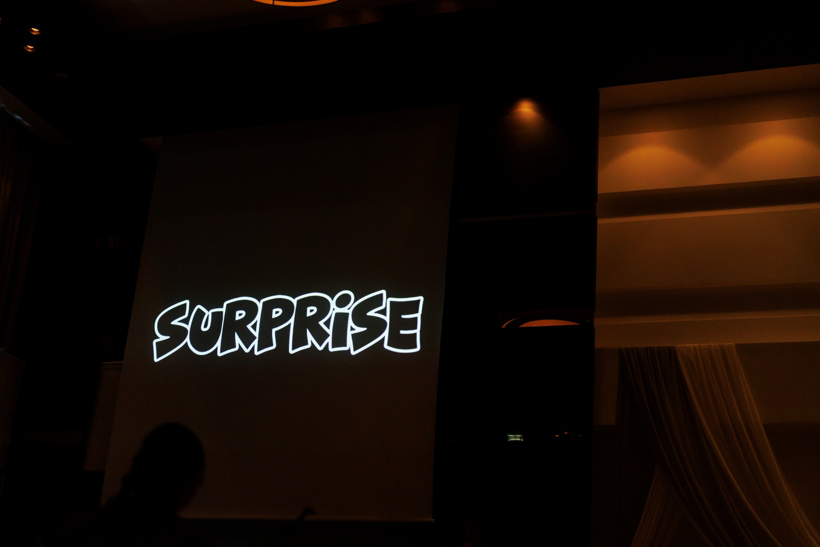 パーティー後半はご友人様からのご余興でスタート。素敵な映像に表情を変えながら、楽しまれていました。