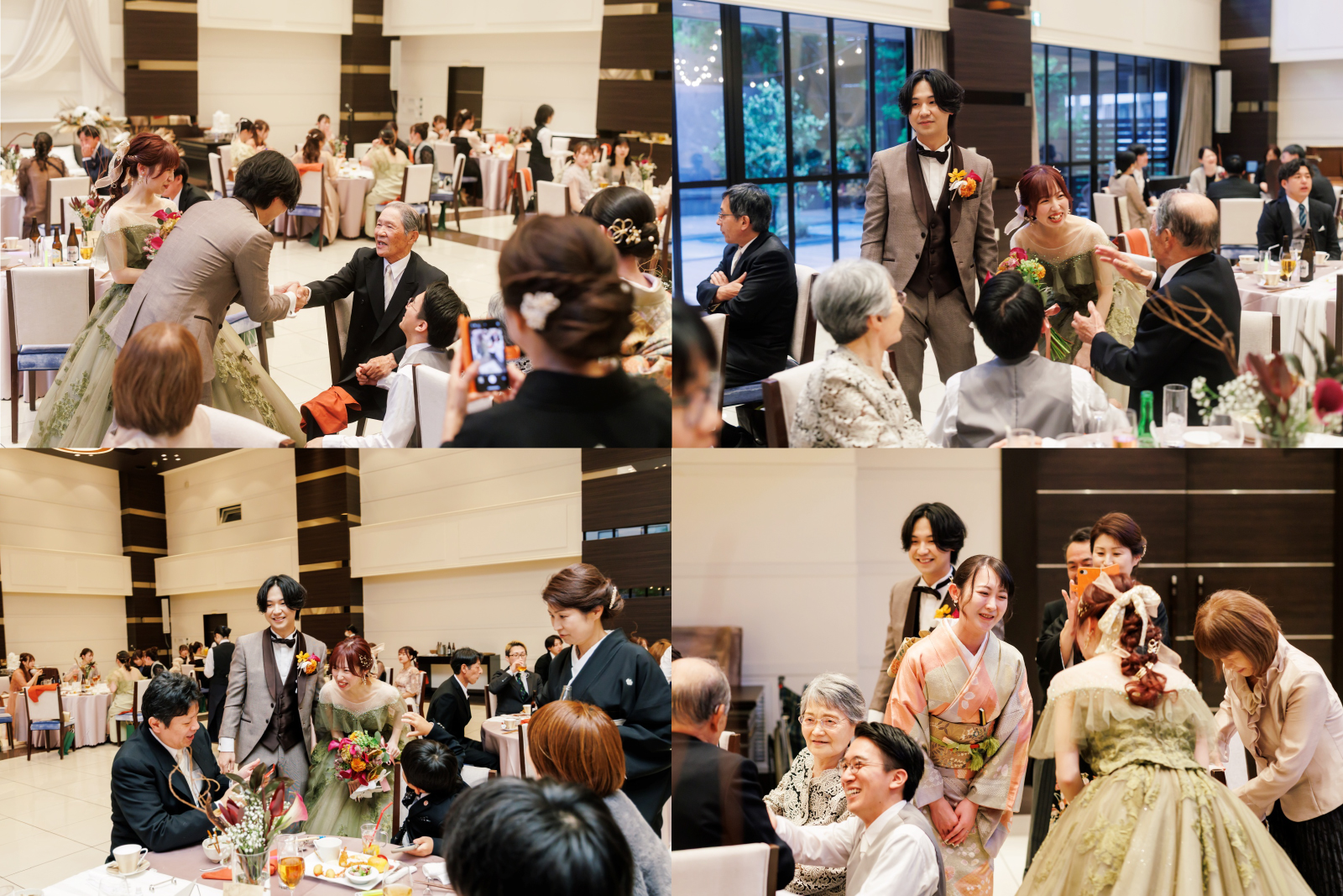 歓談タイムにはおふたりが自ら各テーブルを回りご挨拶を。ご列席頂いたことへの感謝の思いや、これからもよろしくという思いを伝えられた素敵な時間になりました。