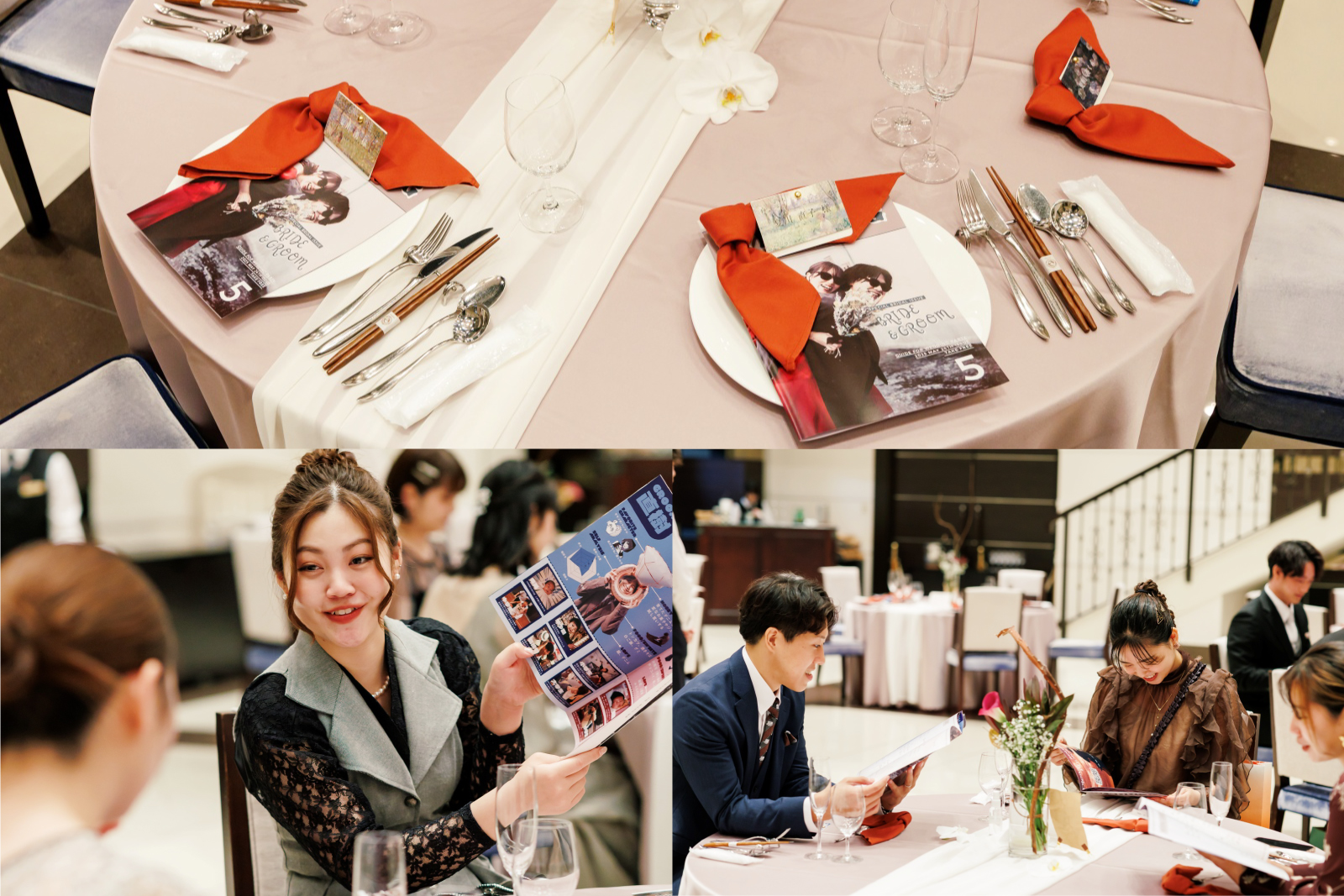 ゲストお席には、おふたりのプロフィールブックが置かれ、おふたりのご入場までの間もゲストの皆様には楽しくお待ち頂けました。