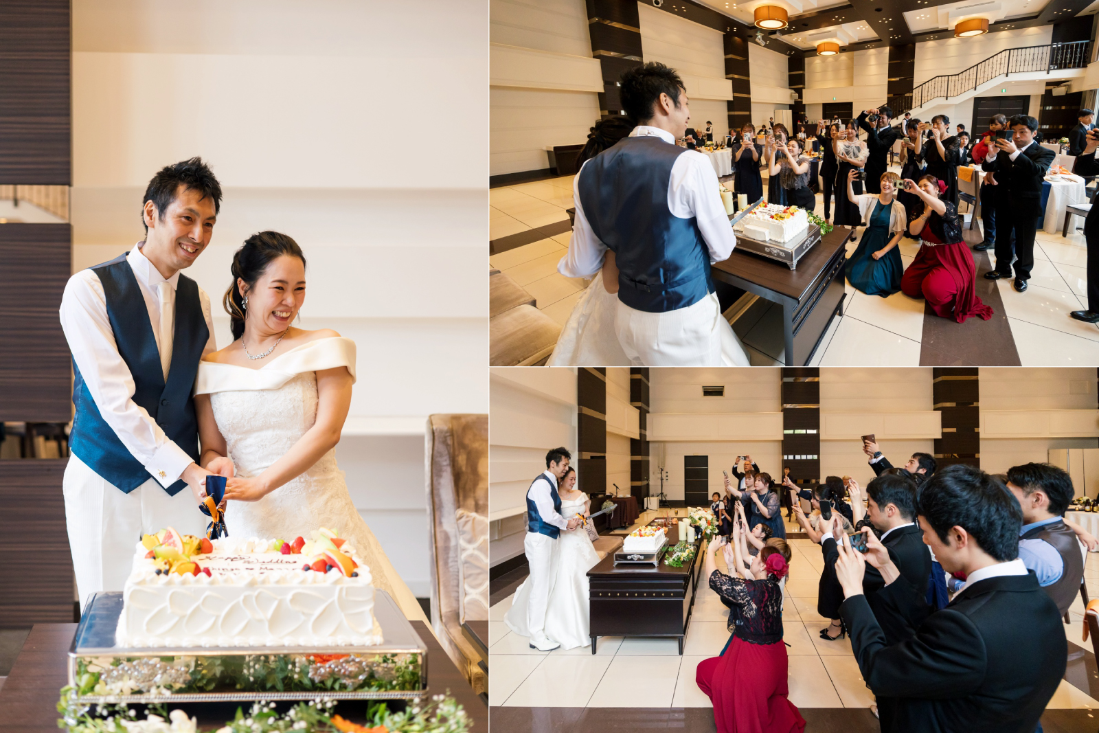 ケーキセレモニーはケーキ入刀、ファーストバイトと見どころいっぱい。おふたりの周りにはカメラをお持ちのゲストが大勢集まって下さり、会場の一体感を感じた素敵な時間になりました。