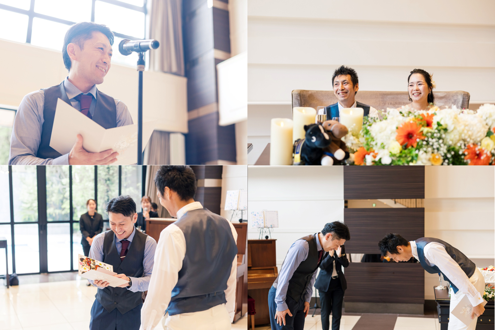 ご友人様からのお祝いのスピーチ。親御様にとっては普段聞くことのない新郎様のエピソードはとても貴重なものなのではないでしょうか。