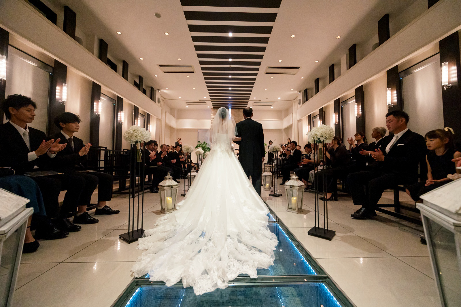 お父様と歩くバージンロード。この日の為に選ばれたウェディングドレスもとても素敵ですね。