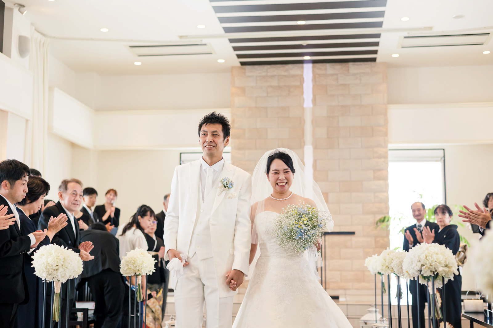 無事に人前式が結びご退場。新婦様の幸せ溢れる笑顔がとても素敵ですね!
