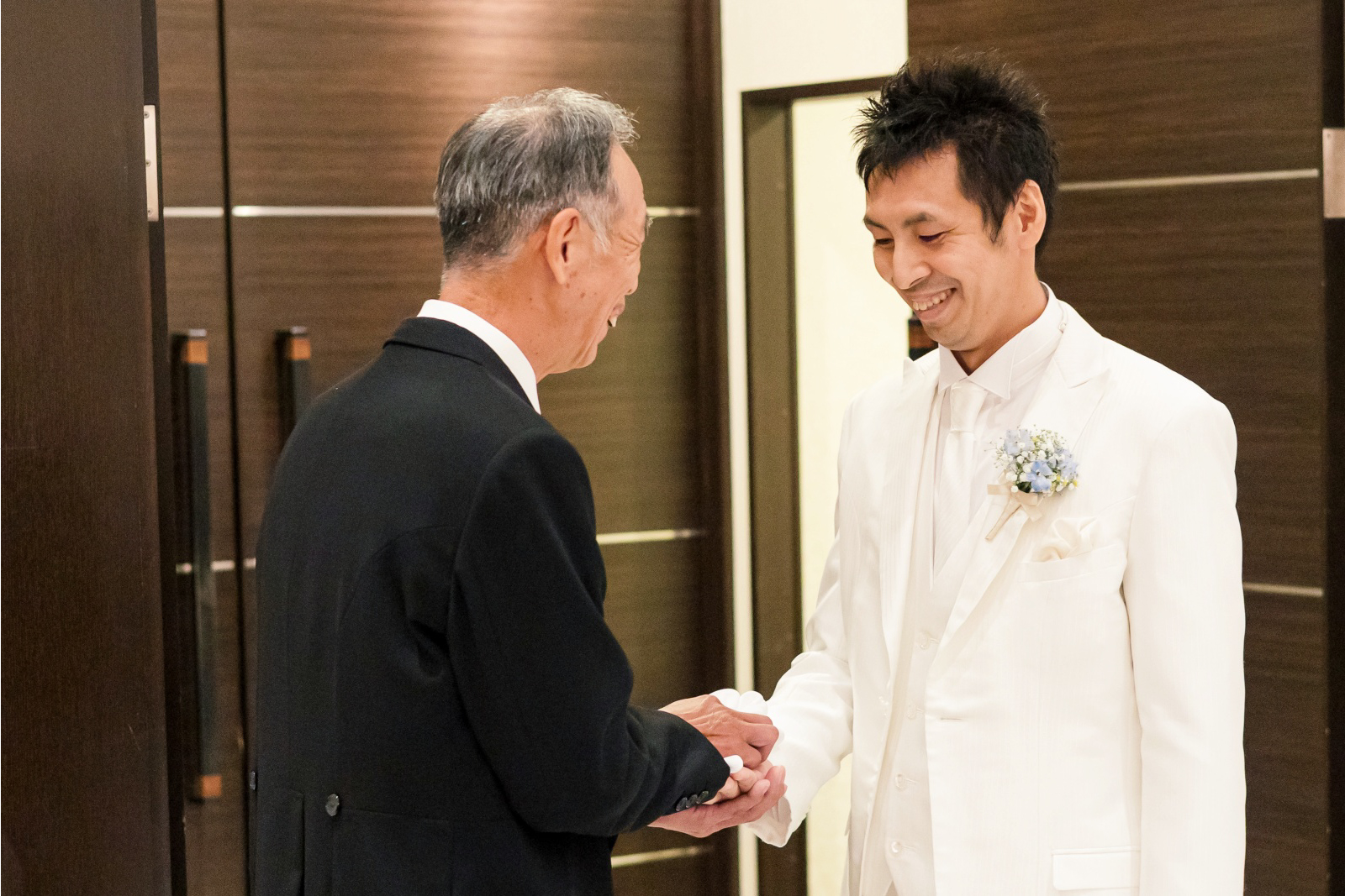 お父様とは固い握手を。お父様の笑顔の中に、「これからも頑張れよ」そんな激励の思いが込められているように見えますね。