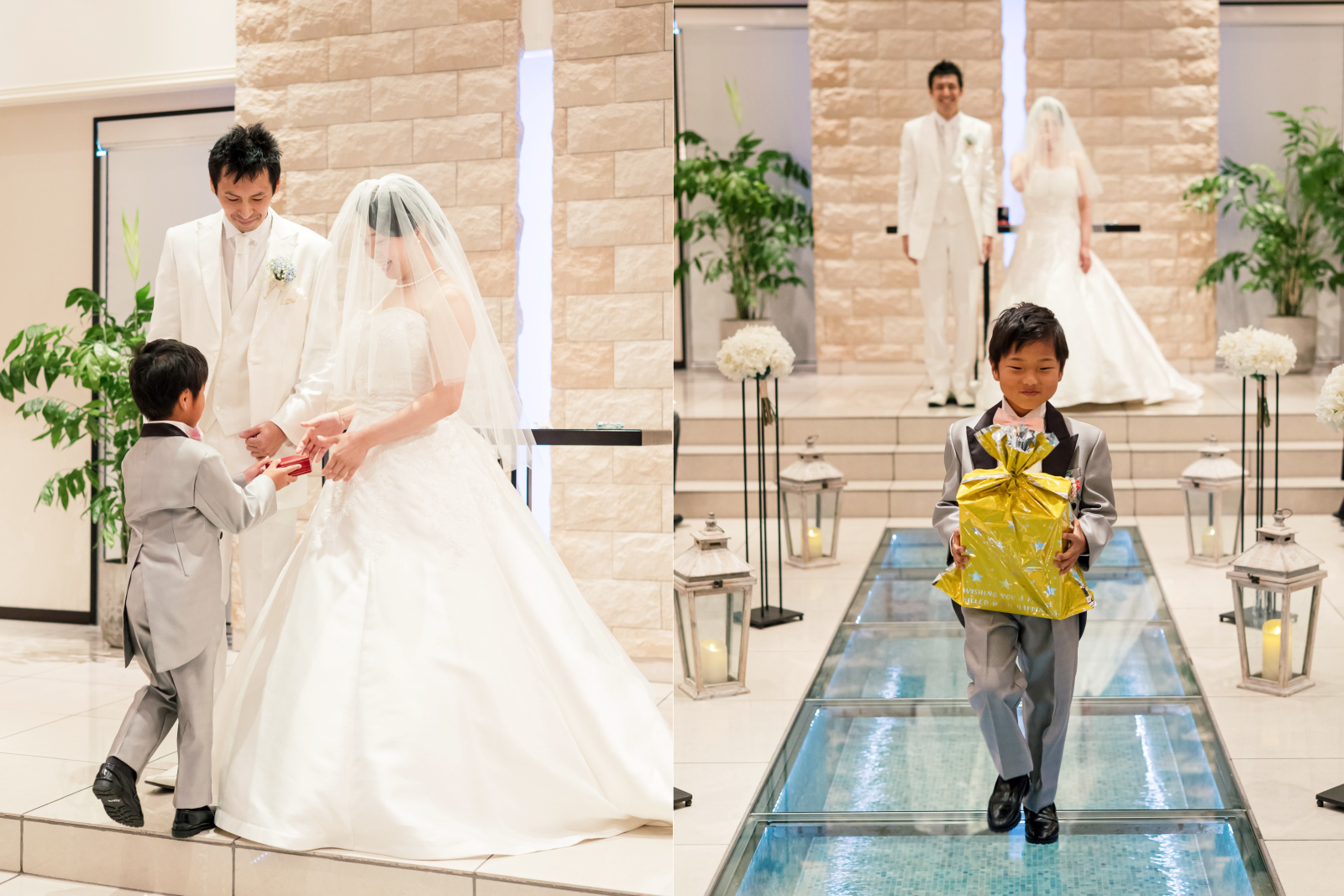 おふたりの大切なマリッジリングを運んでくれるのは新婦様の甥っ子くん。落ち着いた足取りでおふたりのもとまで運んでくれました!