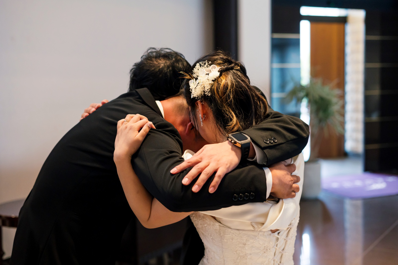 退場後のご姉弟様。3名で肩を組み涙されている様子は、家族の素敵な絆を感じます。