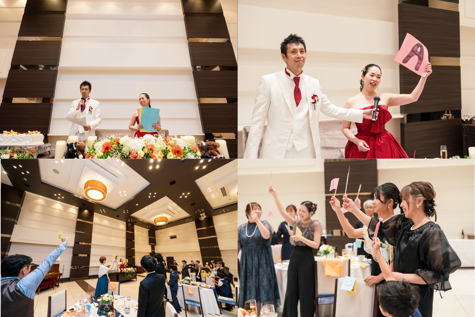 パーティーの後半は、おふたりがご用意されたゲームで盛り上がりました。おふたりに関するクイズを5問。お互いのゲストにとっても、ふたりを良く知る素敵な機会になりました。
