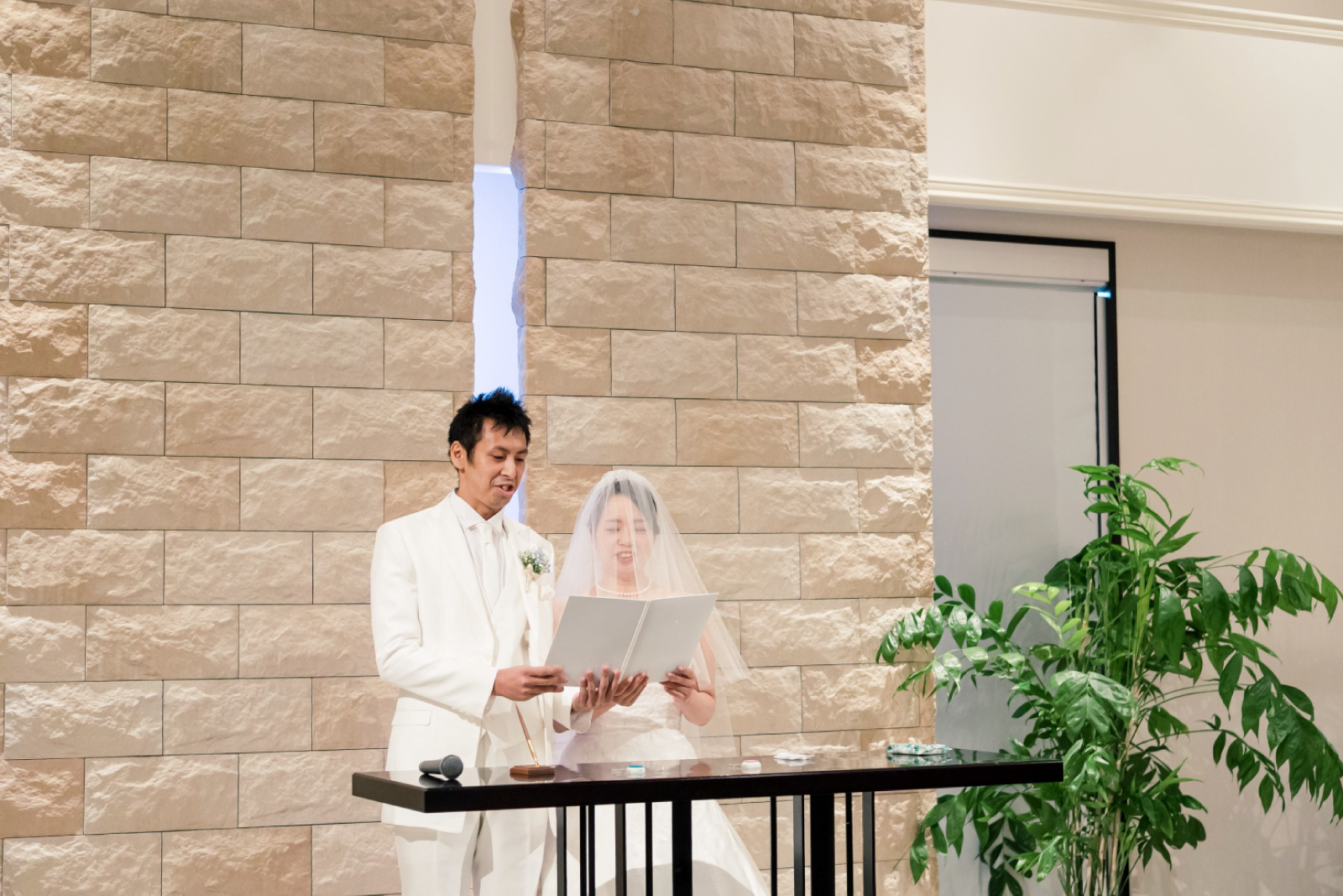 おふたりの結婚式は人前結婚式。おふたりの大切なゲストへおふたりの誓いを読み上げられました。