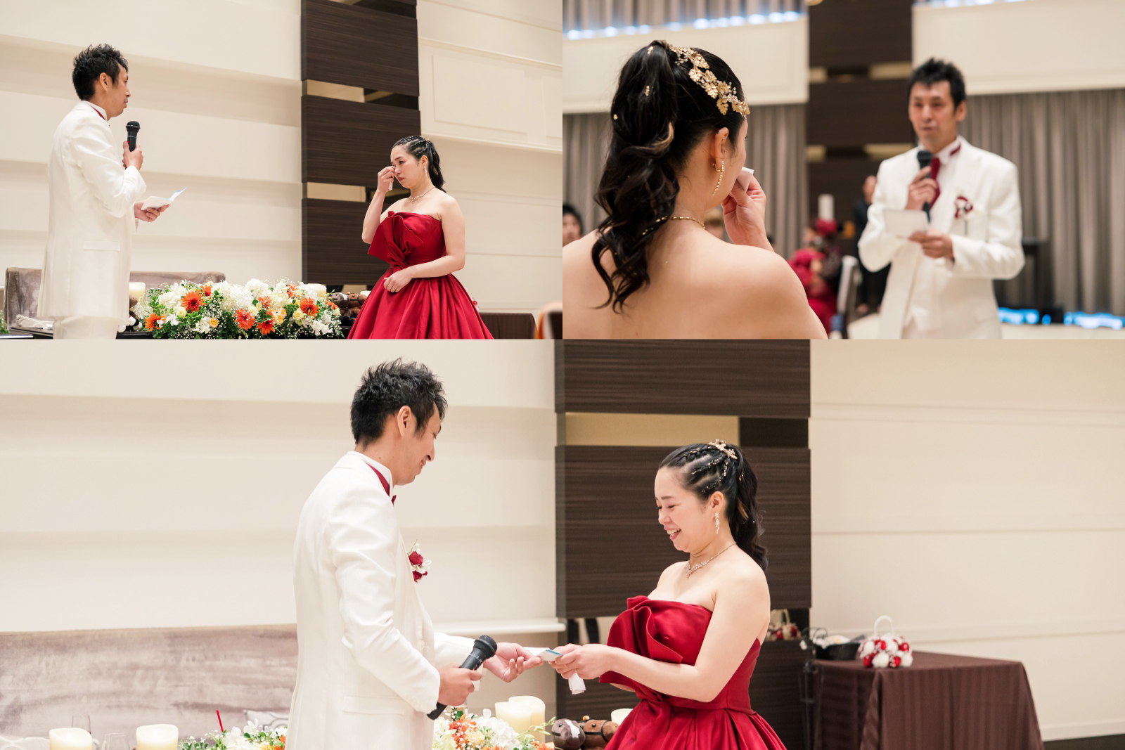 パーティーの締めくくりは、新郎様から新婦様へのサプライズ。お手紙とプレゼント。新婦様にとっては、このサプライズを考え準備をして下さった新郎様のお気持ちが宝物になりますね。
