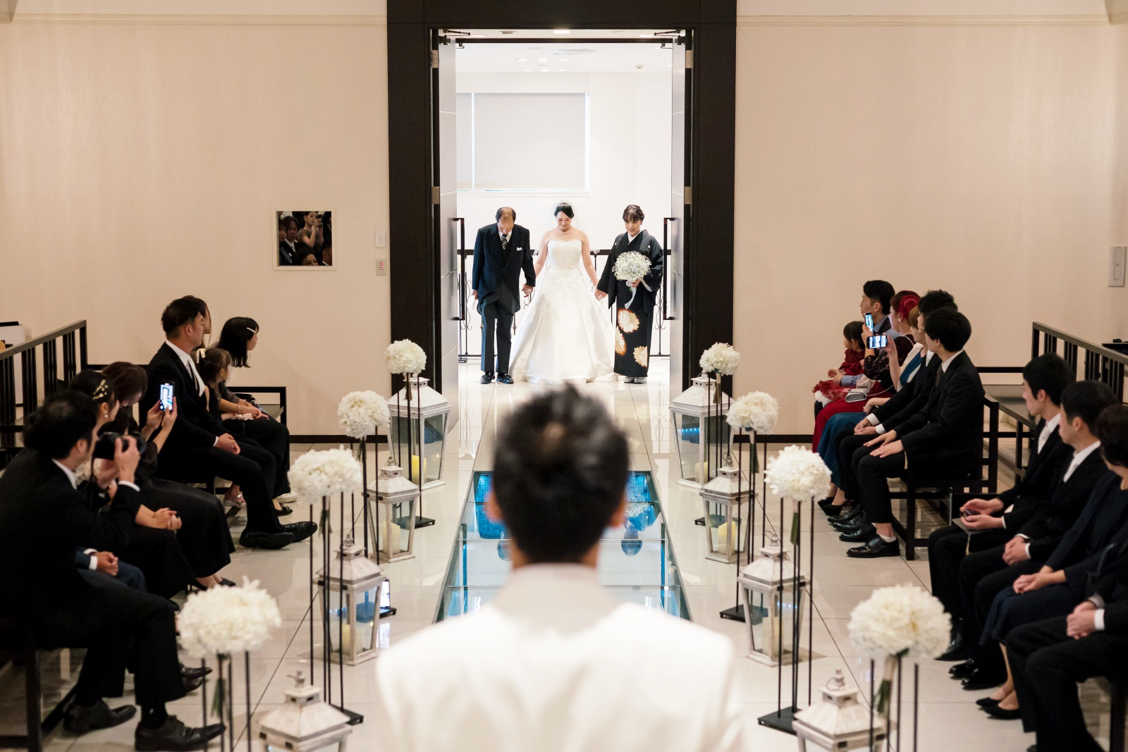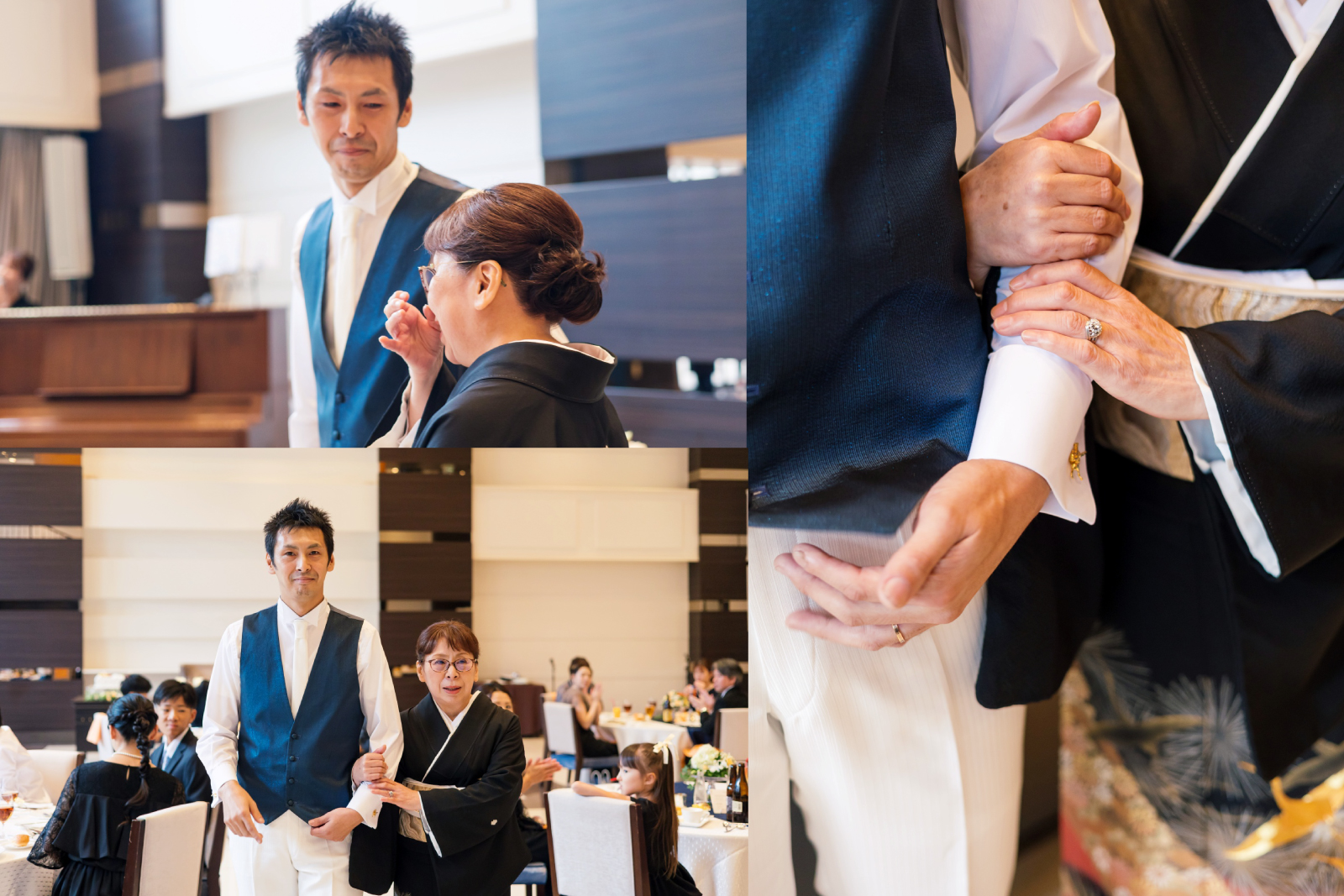 新郎様はお母様とご退場。支度を整え背中を押すような思いのジャケットセレモニーとは違い、大きくなった我が子と腕を組み歩く気持ちは、誇らしくて、温かくて、うれしくて、でもちょっと寂しい。。。そんな思いもお持ちなのではないでしょうか。