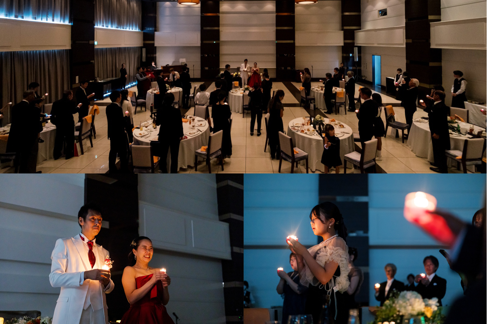 ゲストの皆様が参加していただけるようにと、おふたりが選ばれた演出はキャンドルリレー。大好きな曲に合わせて、各テーブルを回られ、一斉にブローアウト。一瞬の静寂。温かい余韻を感じられる瞬間です。